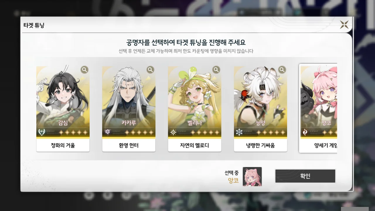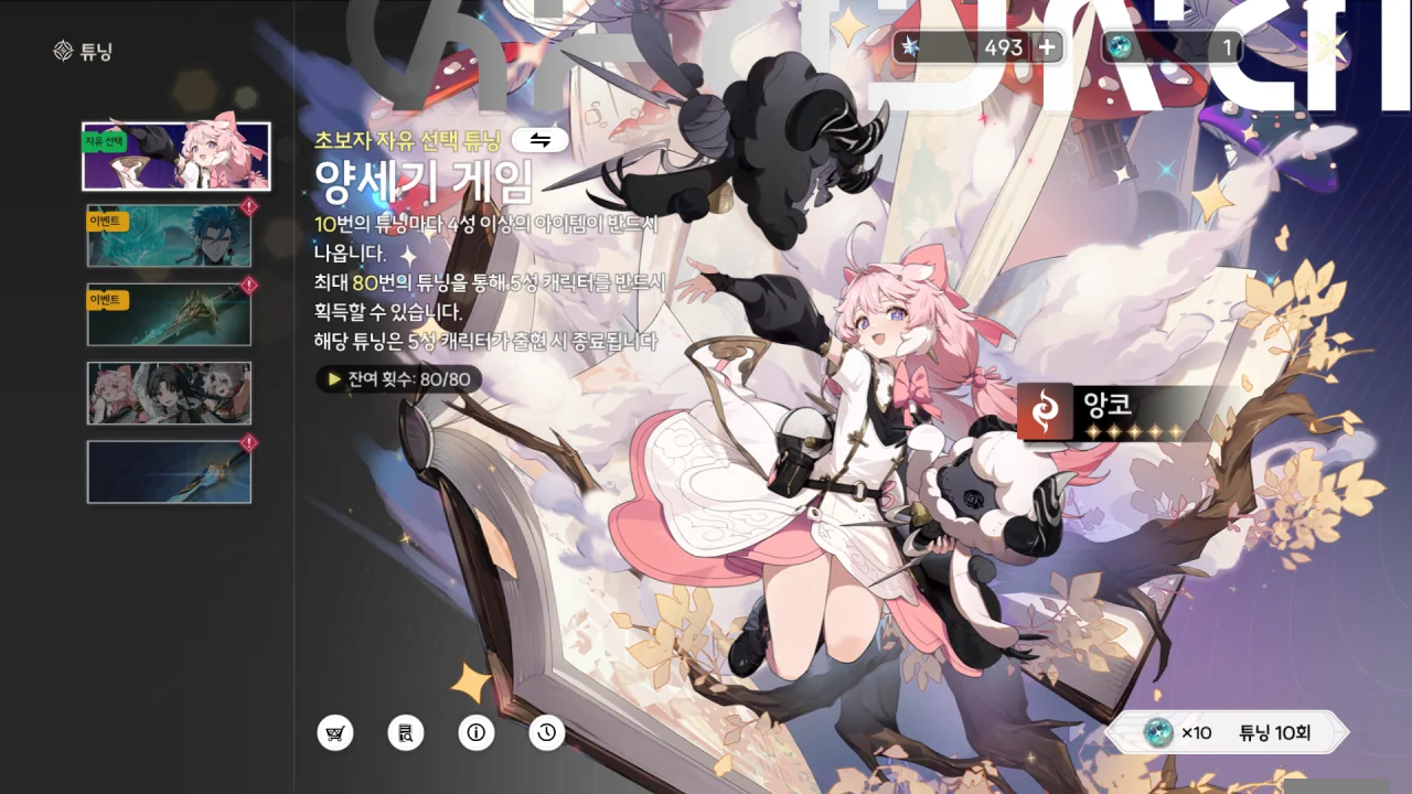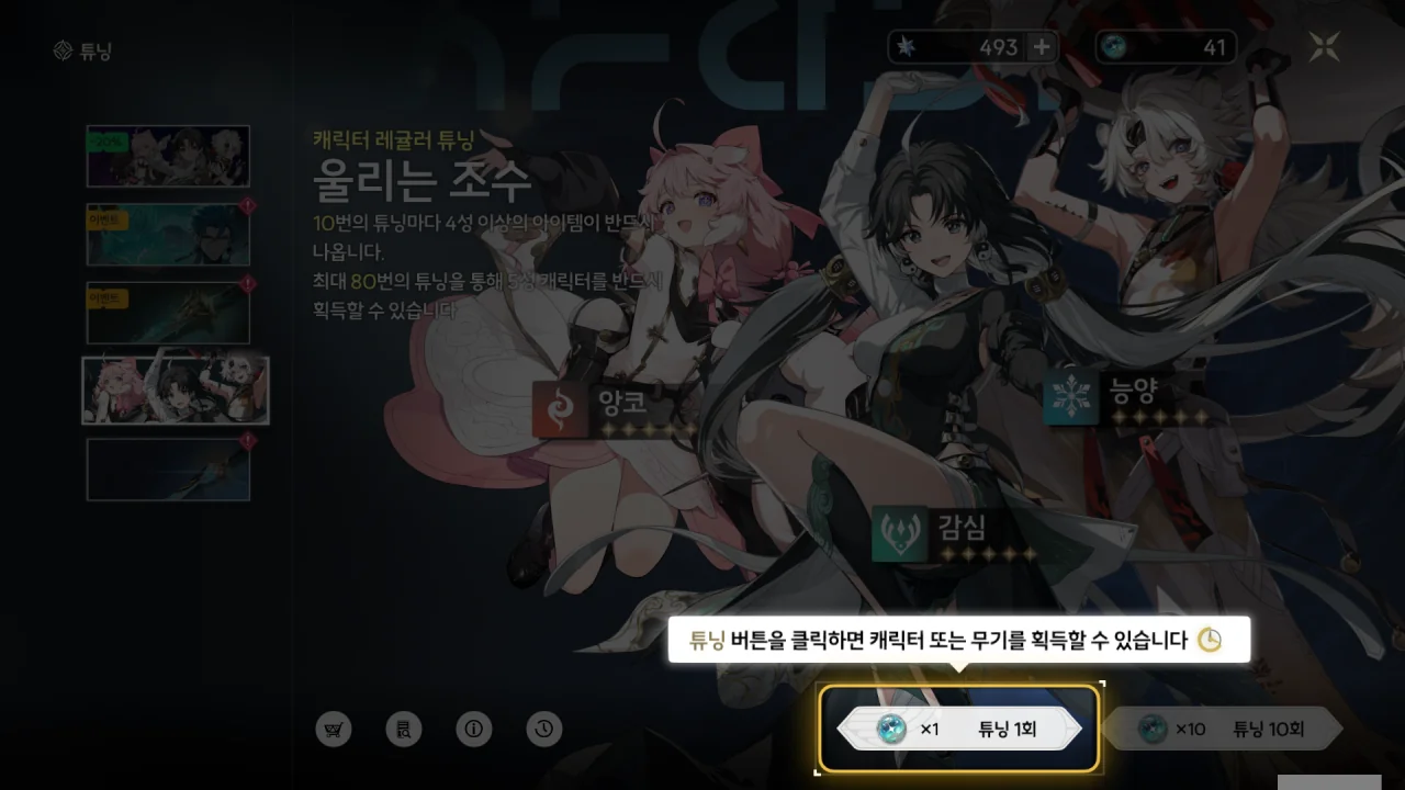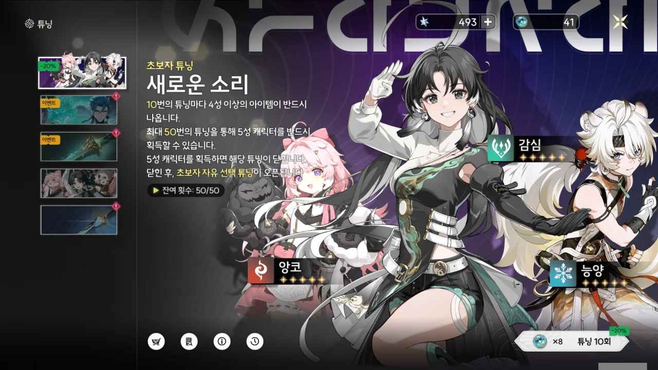 딱 한 번만 쓸 수 있긴 하지만, 초보자 튜닝은 천장이 50회로 굉장히 낮기 때문에, 같은 재화를 써도 5성 캐릭터를 볼 확률이 더 높다고 할 수 있다.