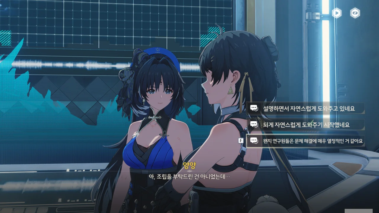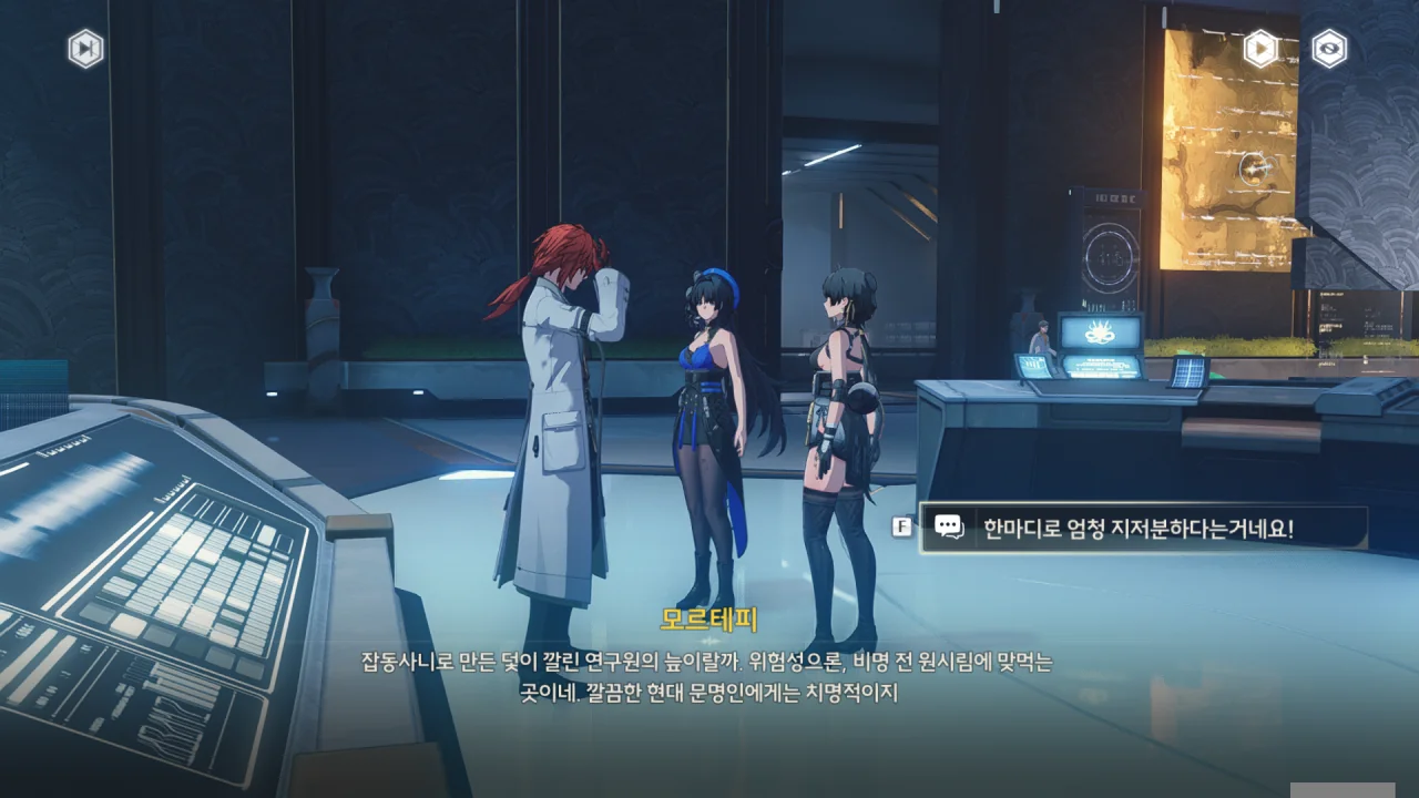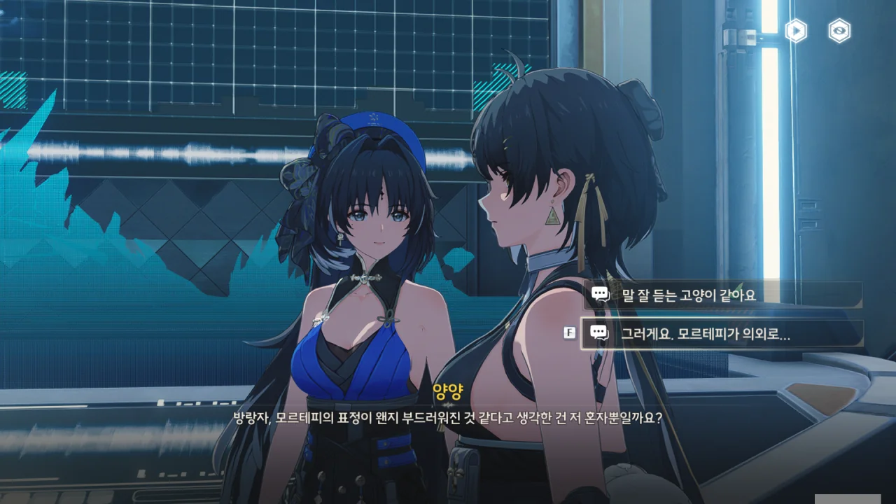 '말 잘 듣는 고양이'라니 ㅋㅋㅋㅋㅋㅋ 이 선택지는 너무 무례한 것 같아, 그나마 멀쩡해 보이는 선택지를 골랐다. 그런 비유는 모르테피에게 좀 더 익숙해진 후에…