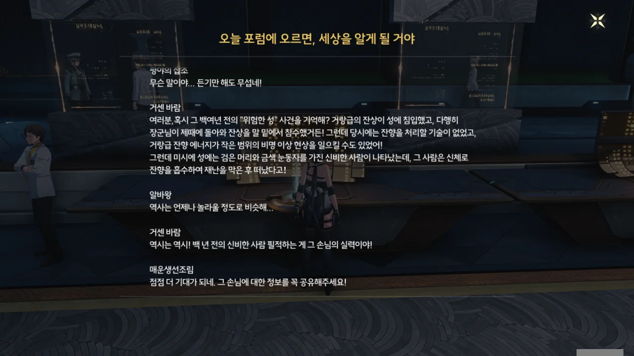 그나저나 전설 속 이야기 말고도, 약 100년 전, 흑발에 금안을 가진 사람이 나타나 에코를 흡수한 적이 있었다고 한다. 방랑자 역시 흑발에 금안이니, 이 정보는 나중에 도움이 될 수도 있겠다.