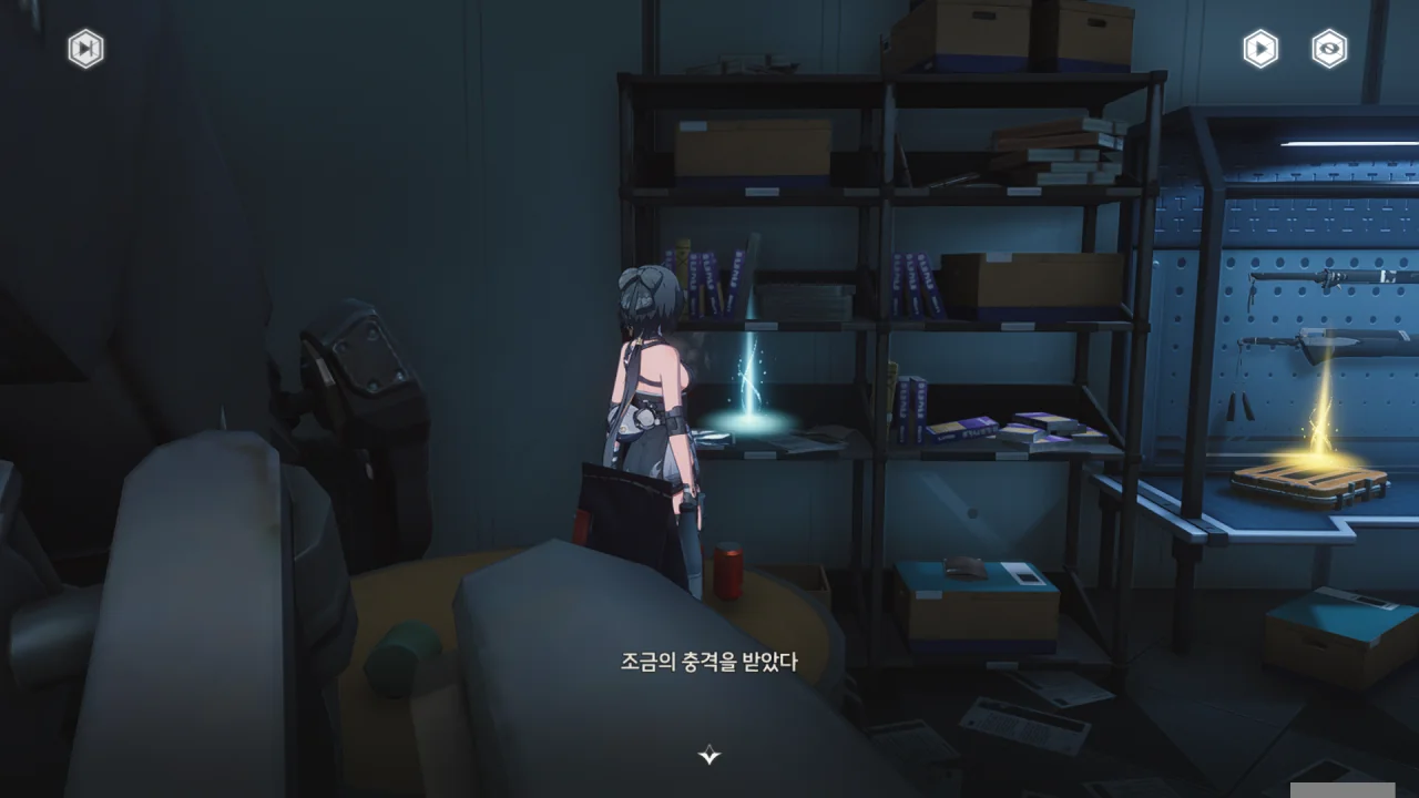 선반에서 떨어진 나뭇조각에 대미지를 입었다.