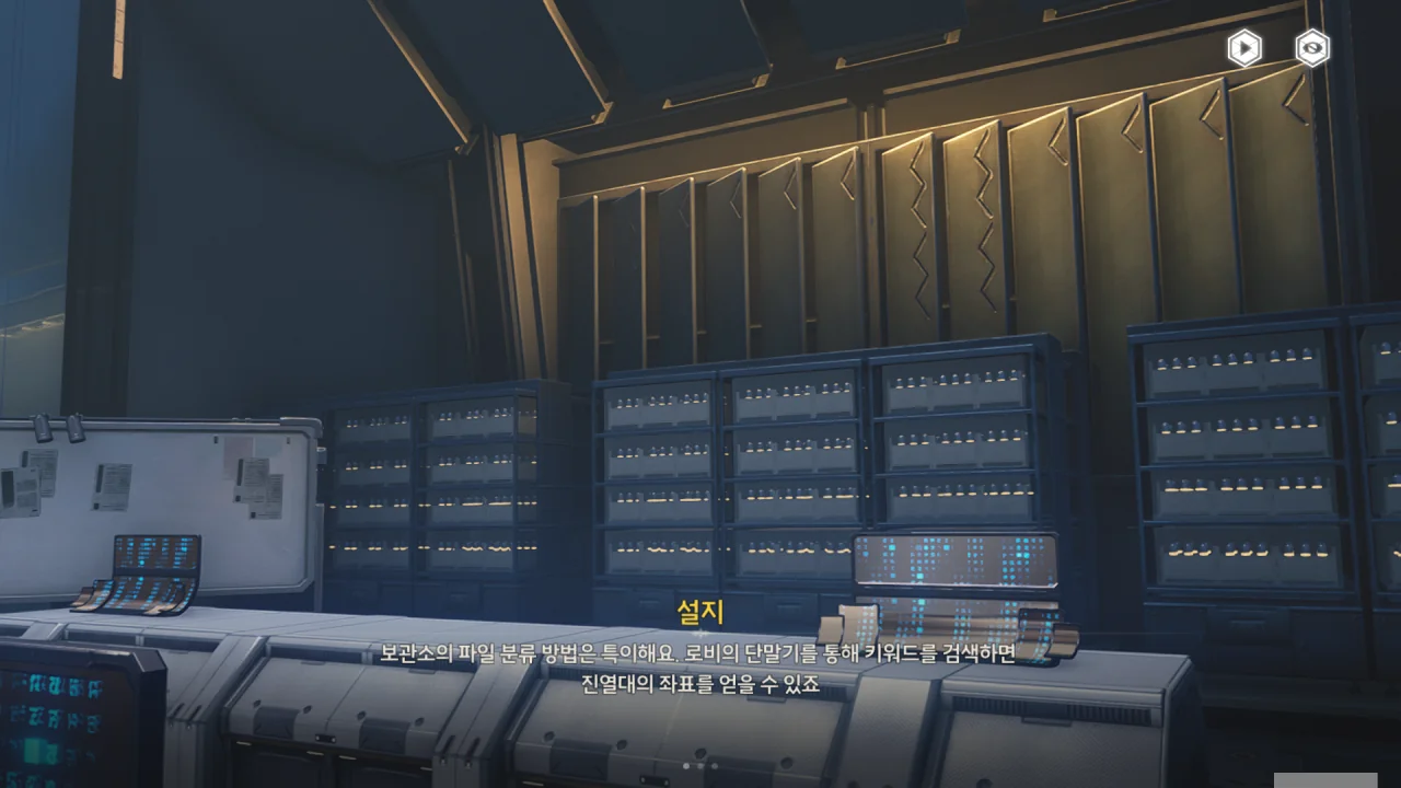 보관소의 파일 보관 방법이 특이해, 키워드를 검색하면 자료를 직접 보여주는 게 아니라, 자료가 보관된 진열대의 좌표를 얻는다고 한다.