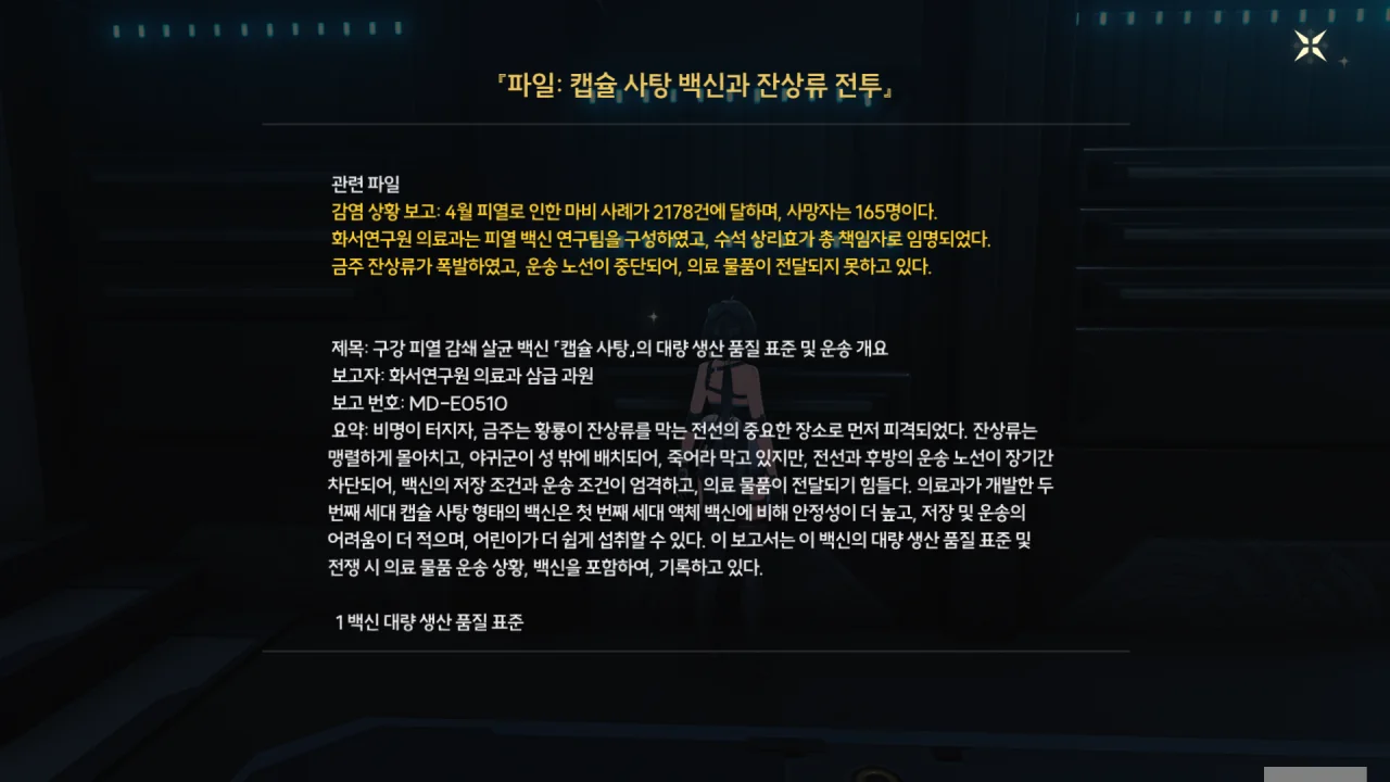 터미널에서 캡슐 사탕 백신과 관련한 정보를 찾았다. '미'열이라고 한다.