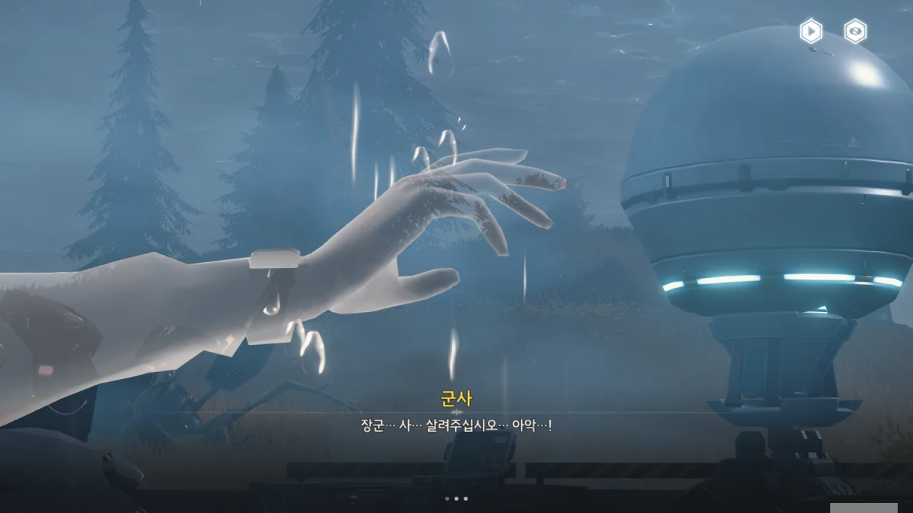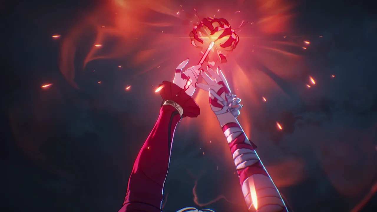 붉은 옷을 입은 한 여자가 붉은 꽃 같은 걸 손에 들고 마치 지휘하듯 휘두르자, 잔상들이 물에서 솟아 나와 진격한다. 잔상들의 눈이 붉게 빛나는 걸 보니, 이 여자가 잔상들을 조종하고 있는 것으로 보인다.