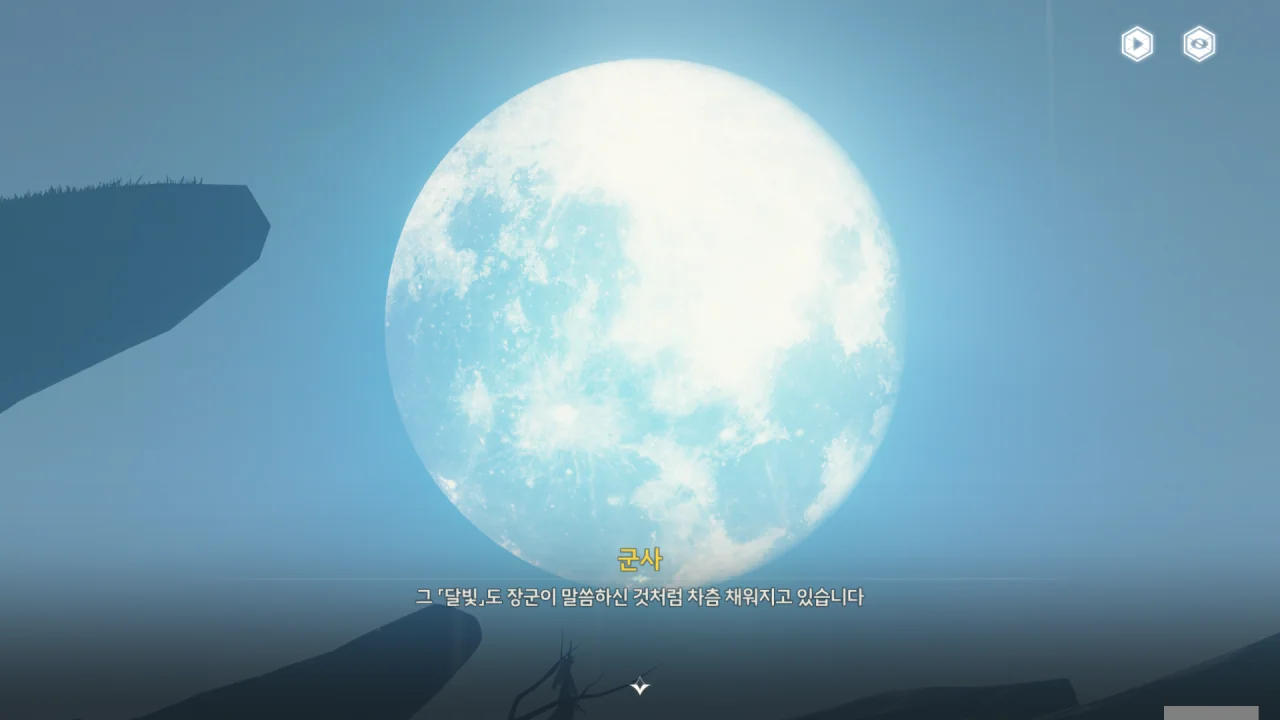 하늘에 뜬 달이 비정상적으로 크다. 저 달은 진짜 달이 아니다. 아마 명식과 관련한 환상이겠지.