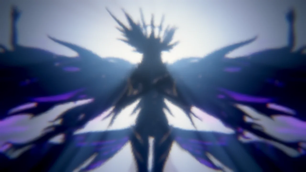 붉은 옷의 여자가 요사스럽게 빛나는 거대한 달을 등지고, 손에 든 붉은 꽃을 높이 치켜드는 장면에 이어 곧바로, 속살이 보랏빛으로 빛나는 거대한 구체가 작은 탑 뒤에 있는 장면이 나왔다.