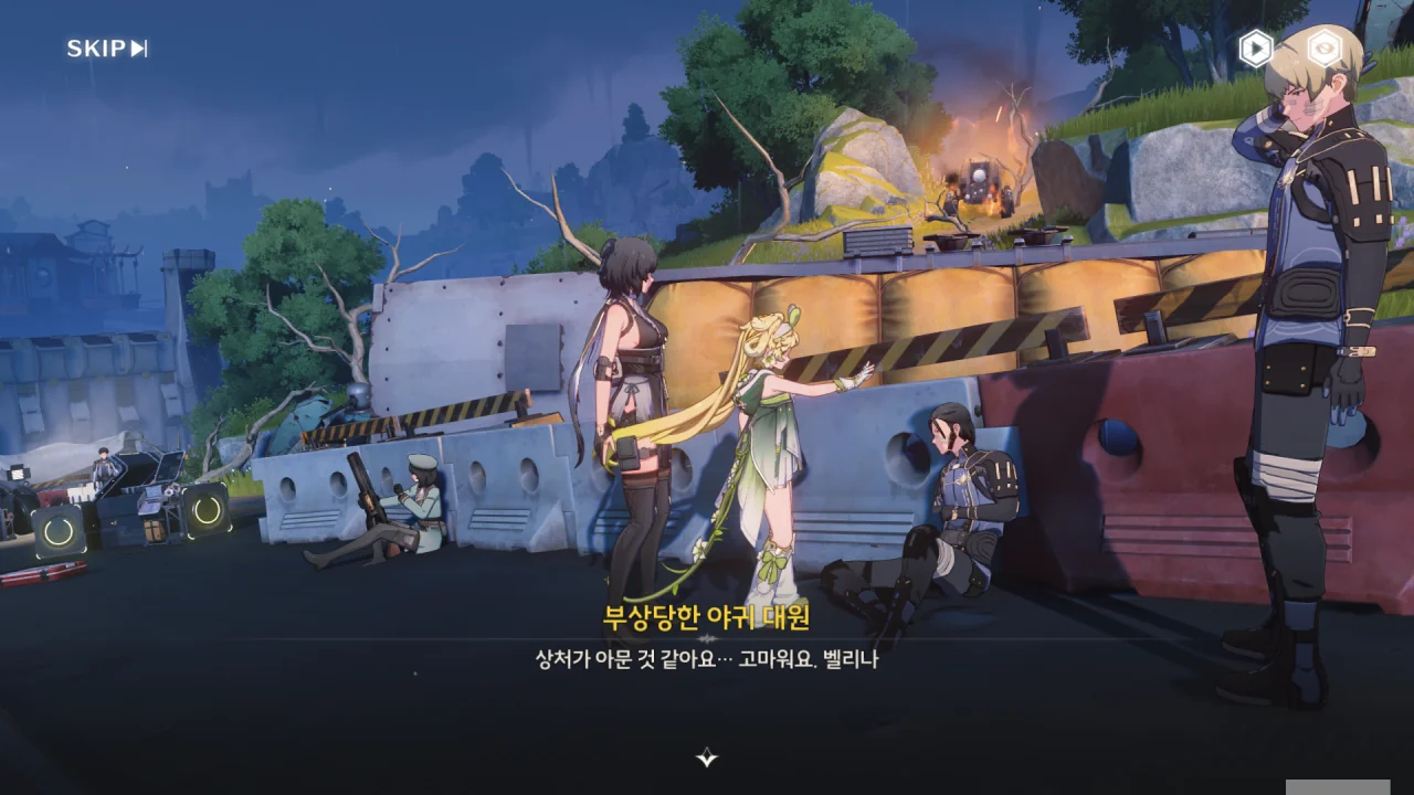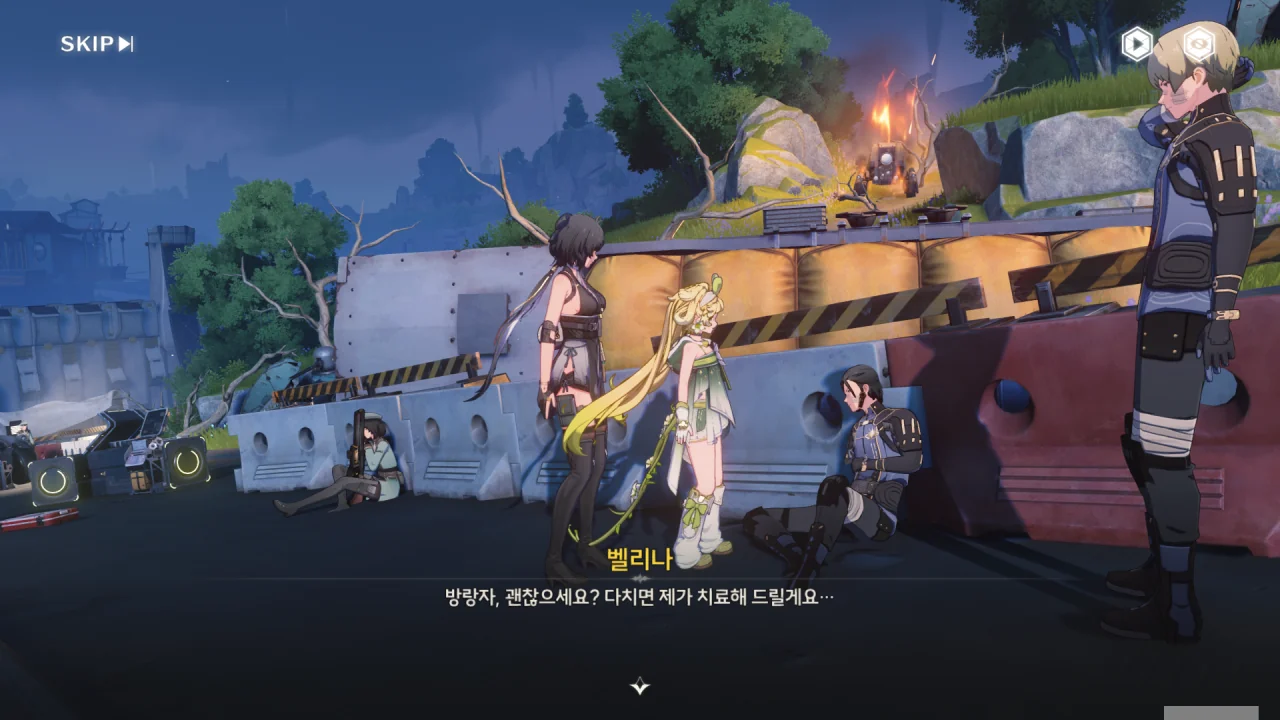 벨리나는 자신의 공명 어빌리티를 이용해 부상자들을 치료하고 있다.