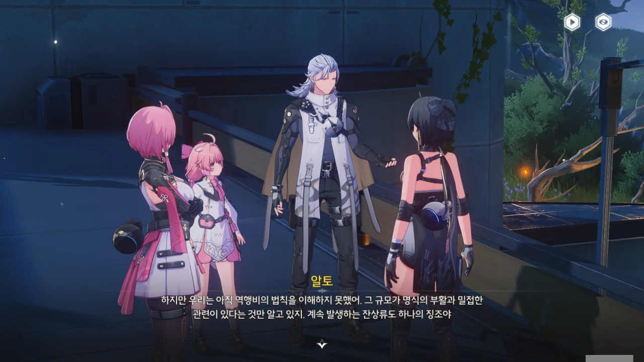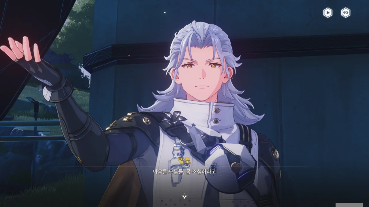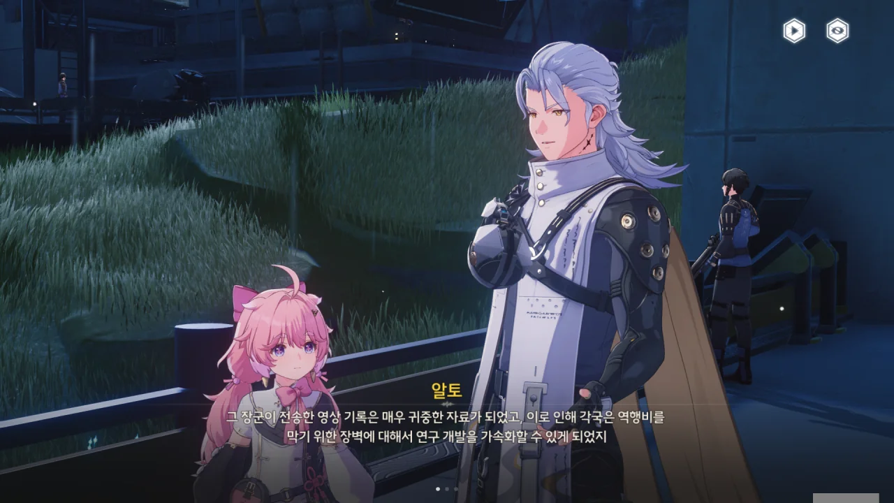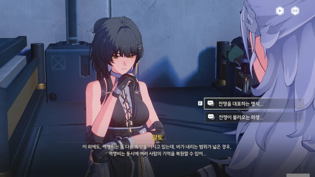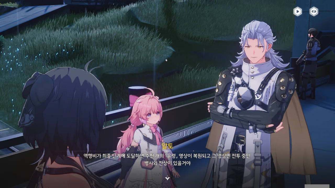 알토가 도기에게 「보호 실드」의 상황을 묻고 있다. 금주성을 보호하던 「보호 실드」가 잔상류의 습격 때문에 한차례 손상을 입은 건지, 도기가 '「보호 실드」를 복구했다'라고 말한다.