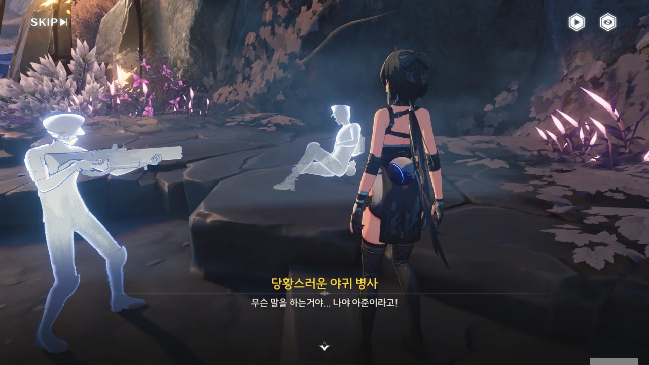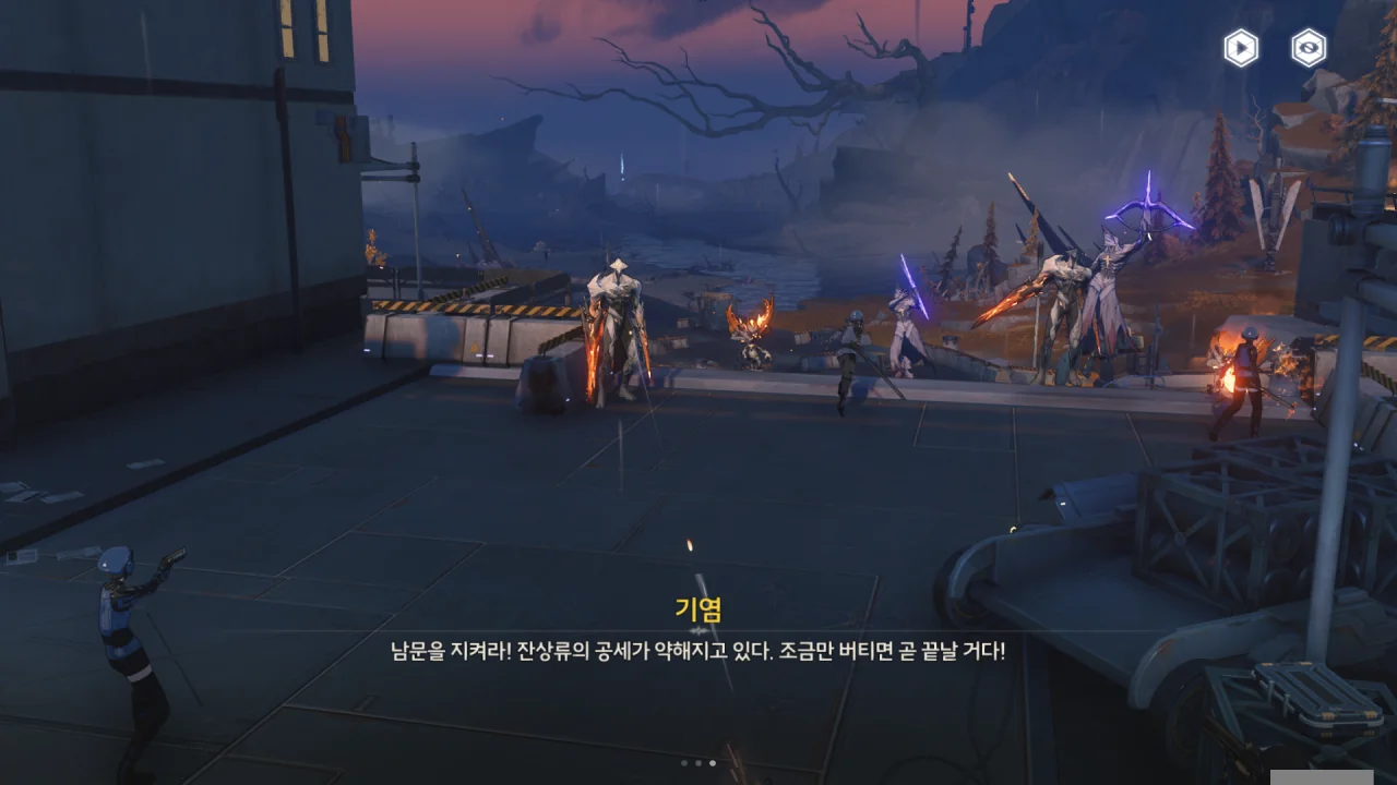 잔상류의 지휘관이 공격 명령을 내린 건지, 잔상류가 군영 안까지 들어와 병사들을 공격하고 있다. 하지만 전원 공명자인 병사들의 실력 역시 만만치 않아, 잔상류의 공세를 그럭저럭 잘 막아내고 있다.