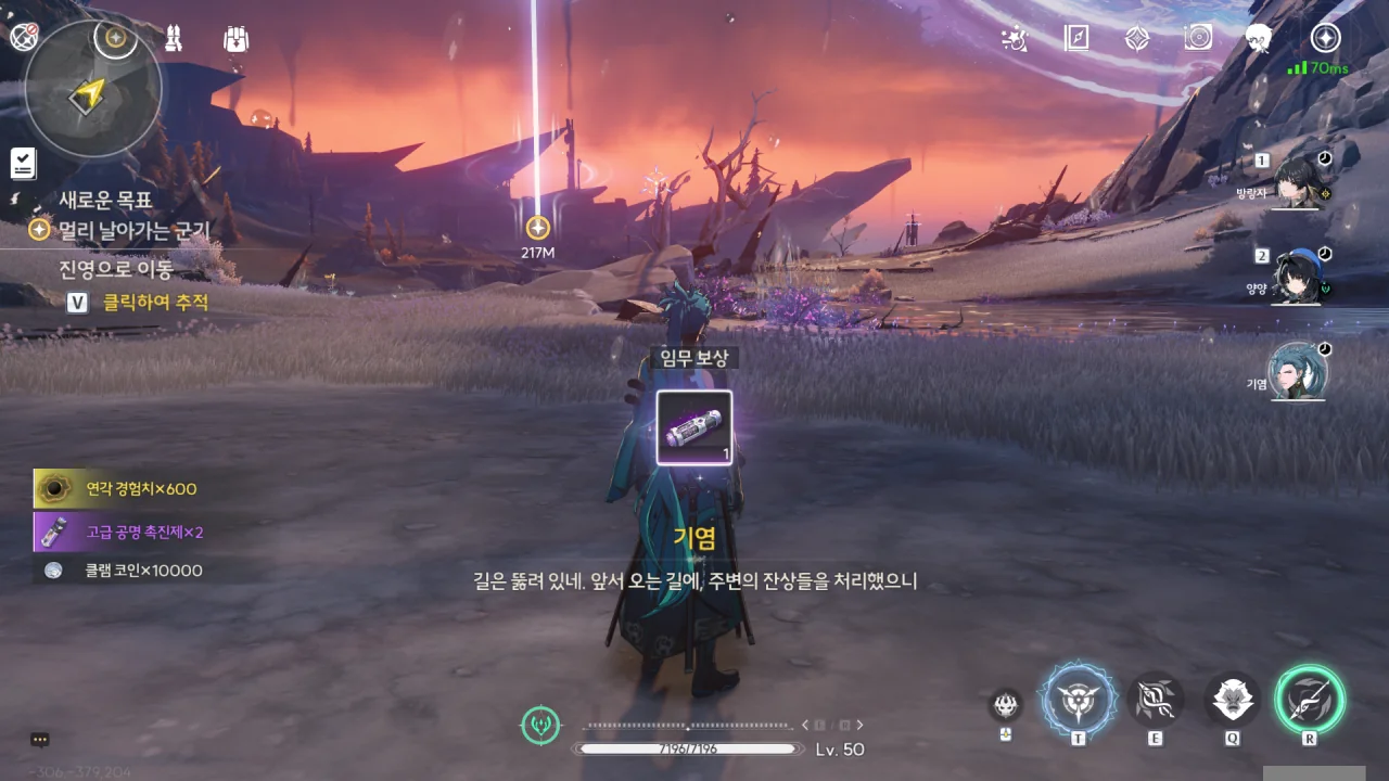 기염이 방랑자와 양양에게 역행비 저항제를 나눠준다.