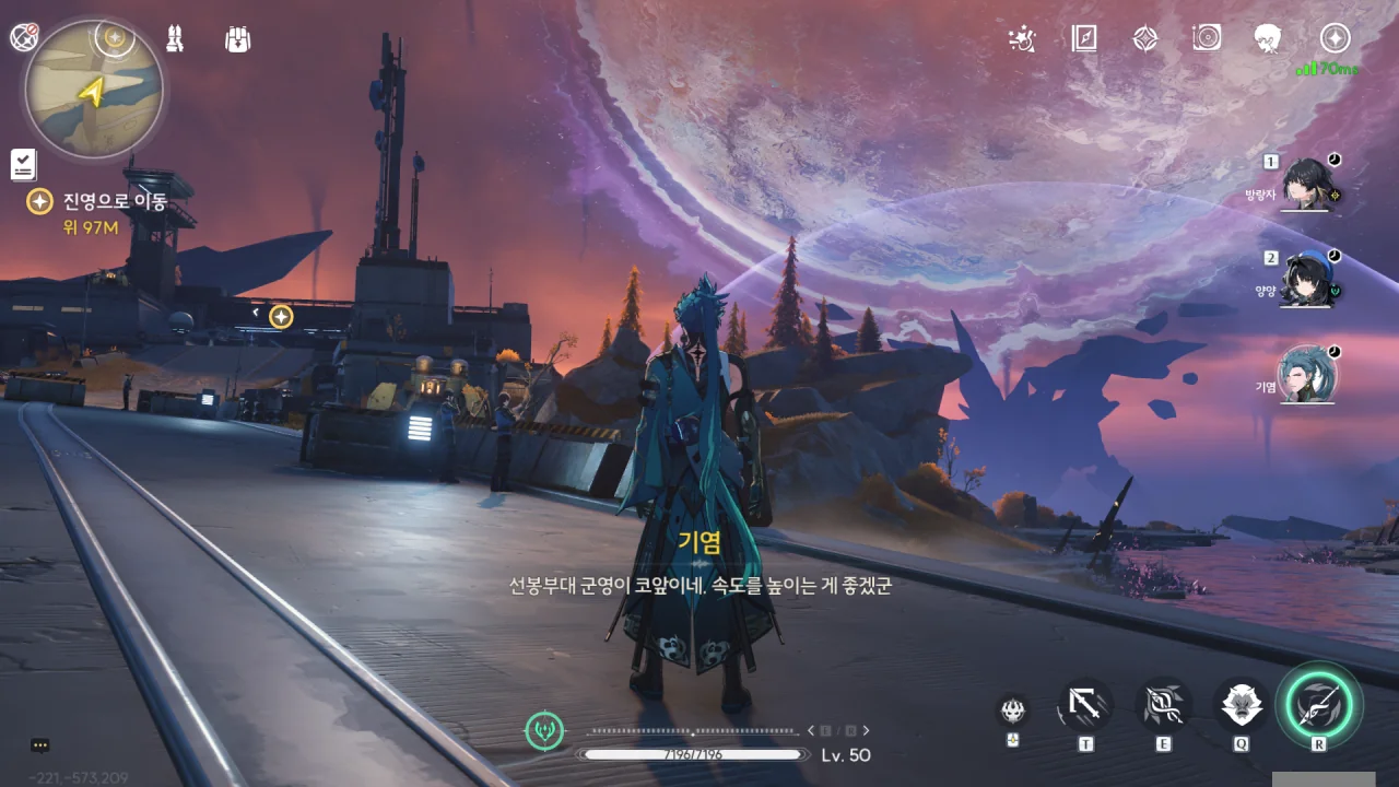 기염이 여기까지 오며 길을 청소한 덕분에, 편하게 군영까지 갈 수 있다.