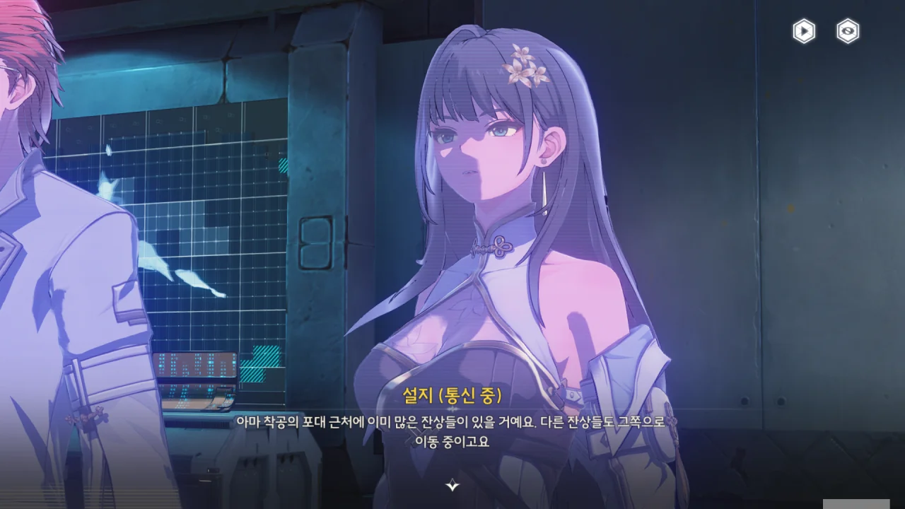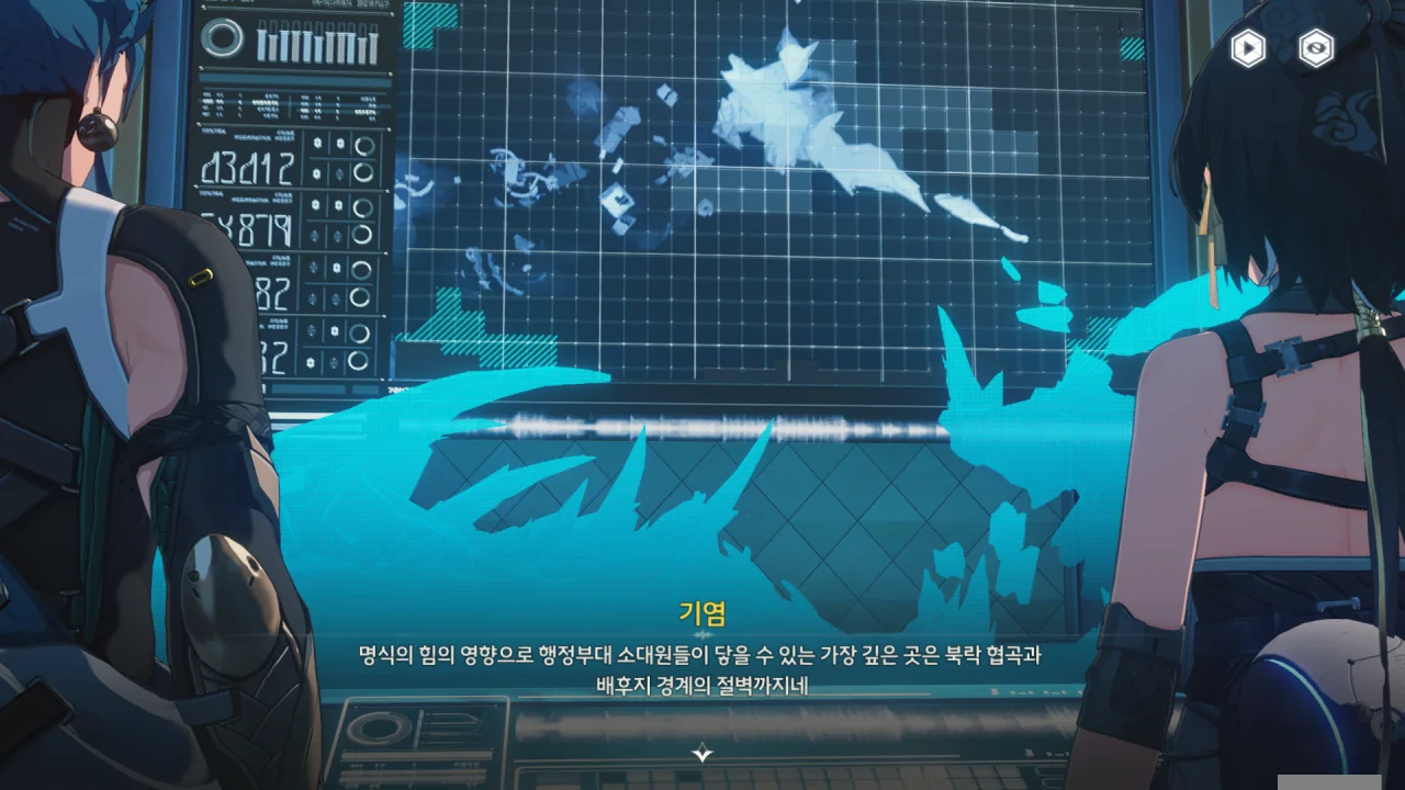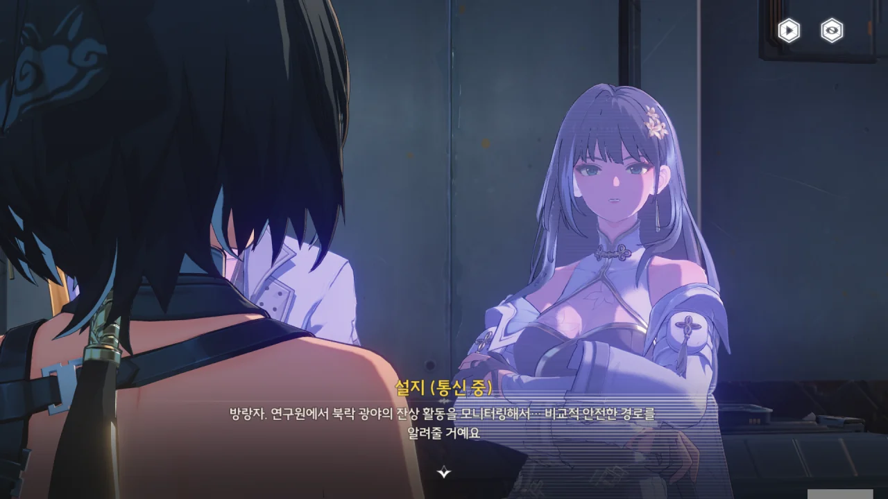 설지가 연구원에서 북락 광야의 잔상 활동 모니터링 결과를 통해 비교적 안전한 경로를 알려주겠다고 한다.