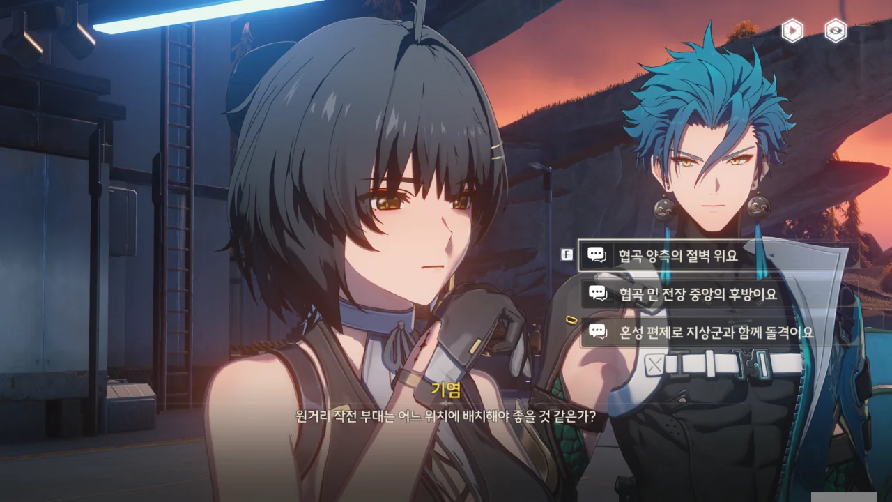 우회 전술을 쓰기엔 양 옆에 절벽이 있어 불가능하고, 엄호를 받으며 돌격하는 건 전선 유지에 도움이 안 된다. 일점돌파를 통한 신속한 적진 통과만이 조각상으로 가는 가장 빠른 길로 보인다.