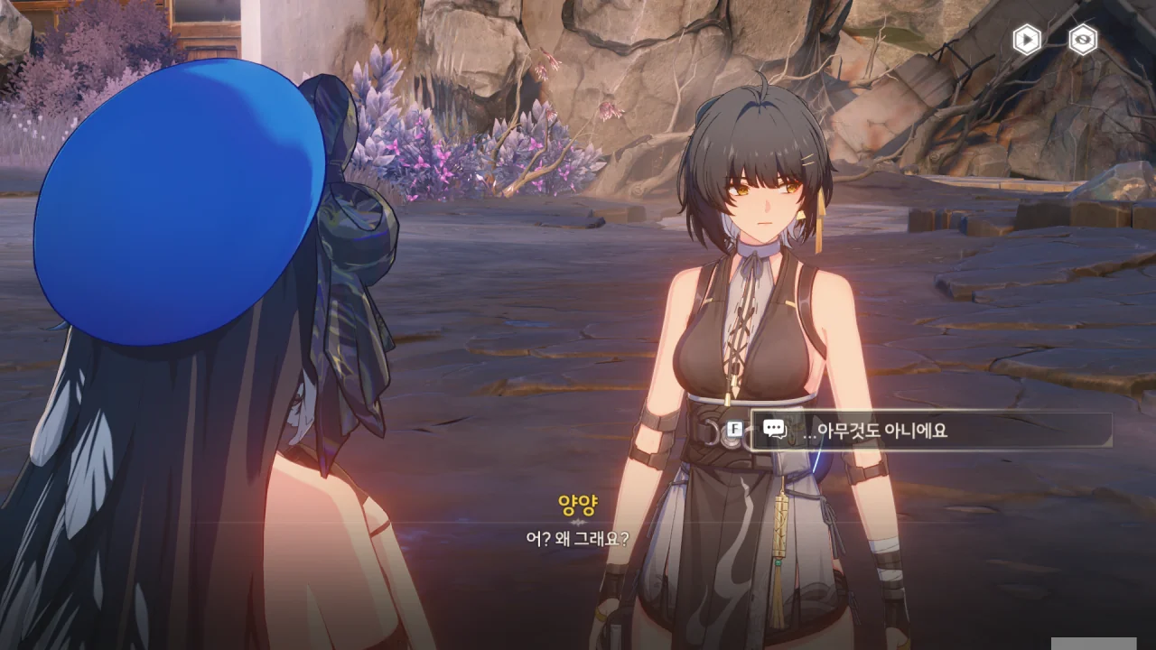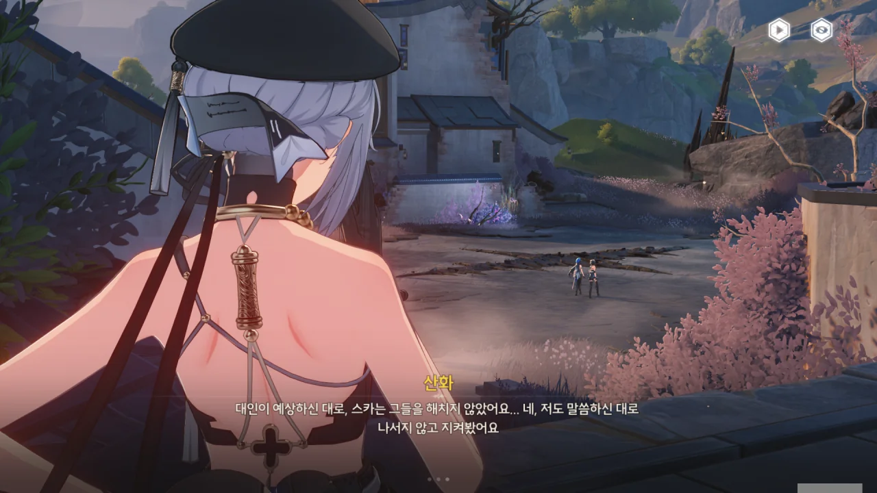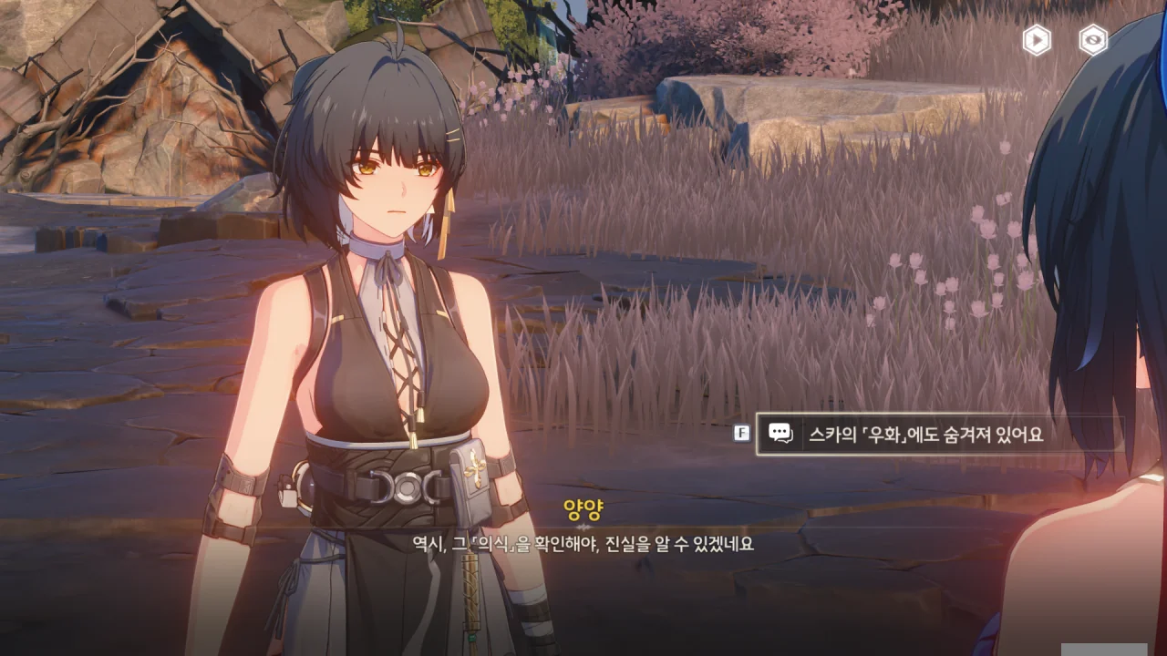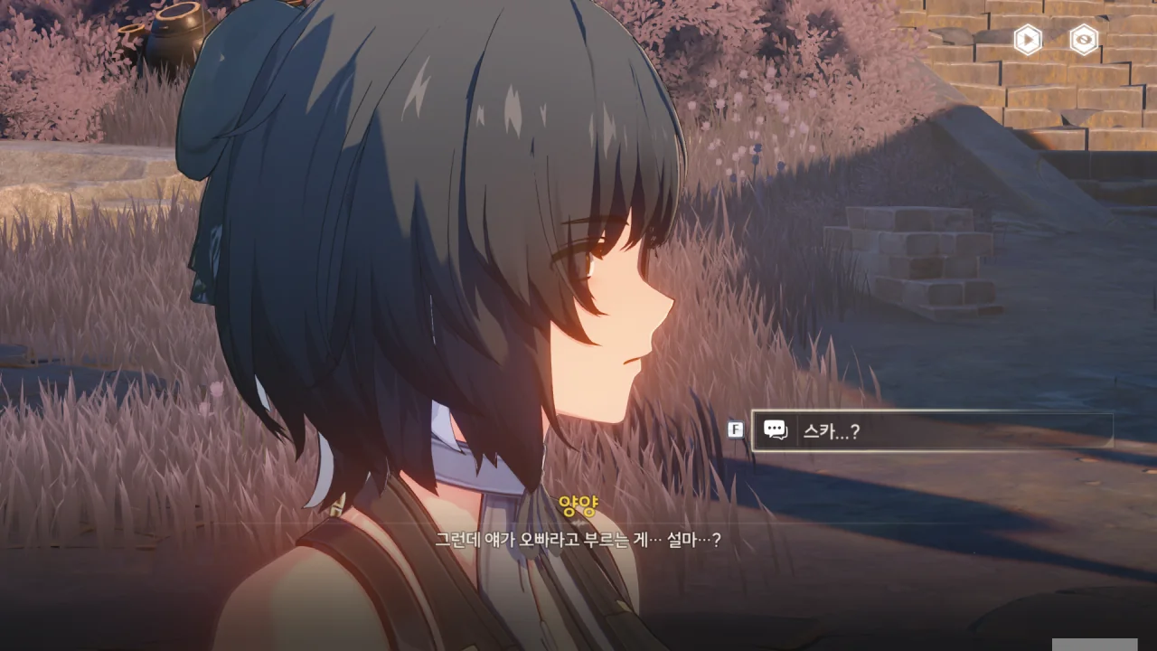 스카가 말했던 대로, 방랑자는 인기가 참 많다. 연구원 앞에서도 그러더니, 여기서도 산화가 방랑자를 지켜보고 있네. 방랑자가 느꼈던 건, 산화의 시선이었던 모양이다.