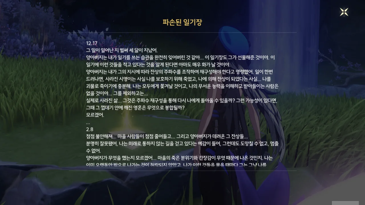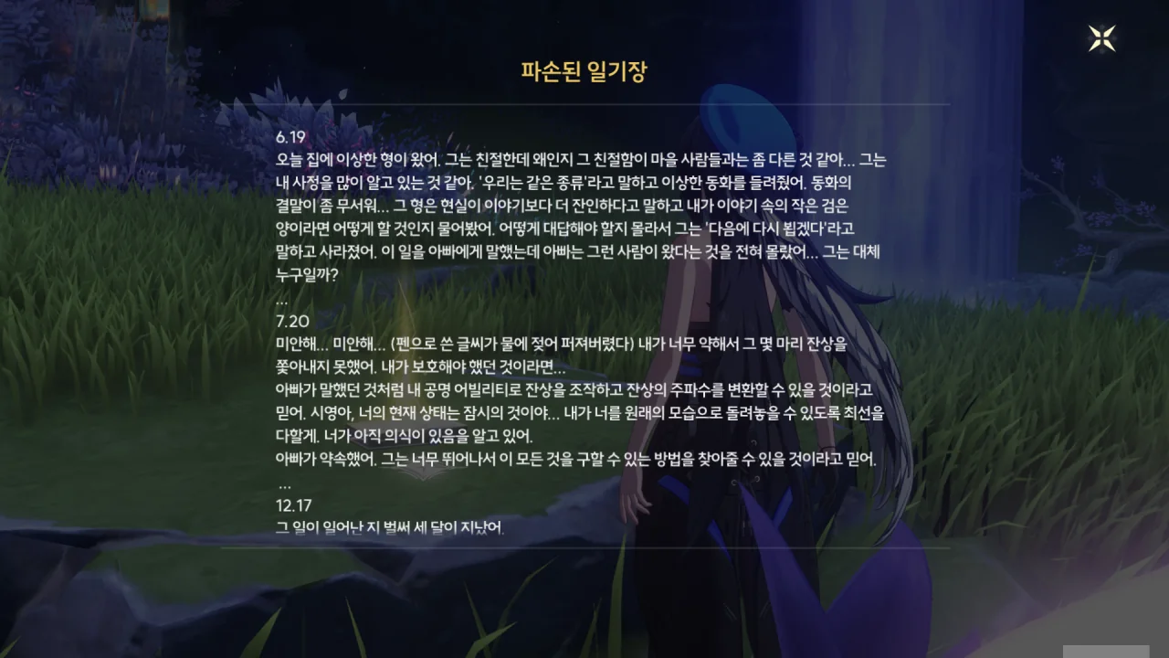 이상한 일기. 일기의 주인의 필촉이 어린것 같다. 공명자와 잔상의 기운을 느낄 수 있다.