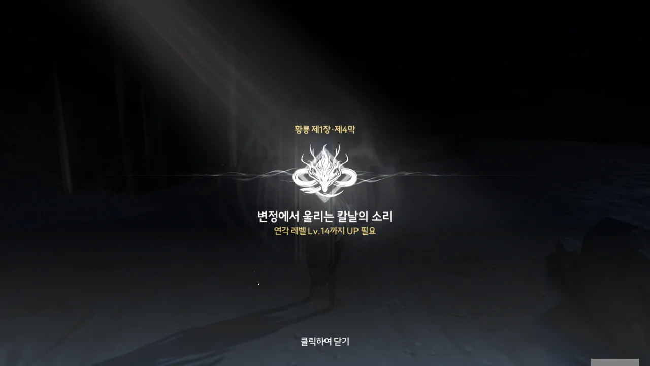 다음 이야기인 '제1장 황룡 제4막 [변정에서 울리는 칼날의 소리]'는 연각 레벨 14가 되어야 열린다고 한다.