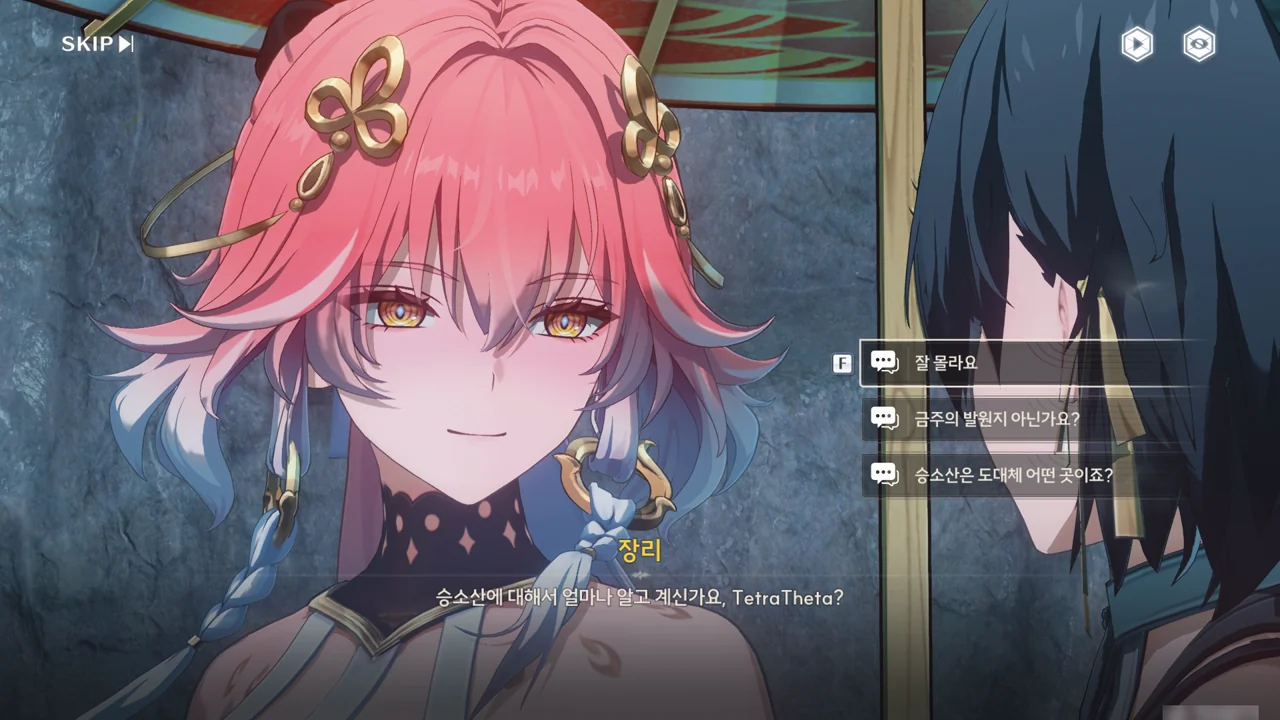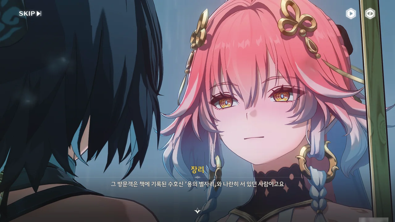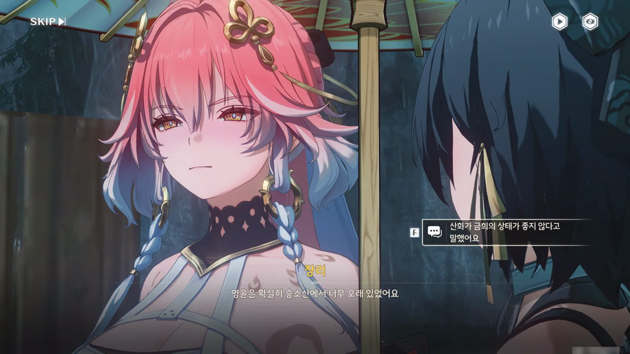 승소산의 용 모양 조각을 본 방랑자가 머리를 스치는 고통에 얼굴을 찌푸리자, 장리가 자장가 같은 노래를 불러주어 방랑자를 진정시킨다.