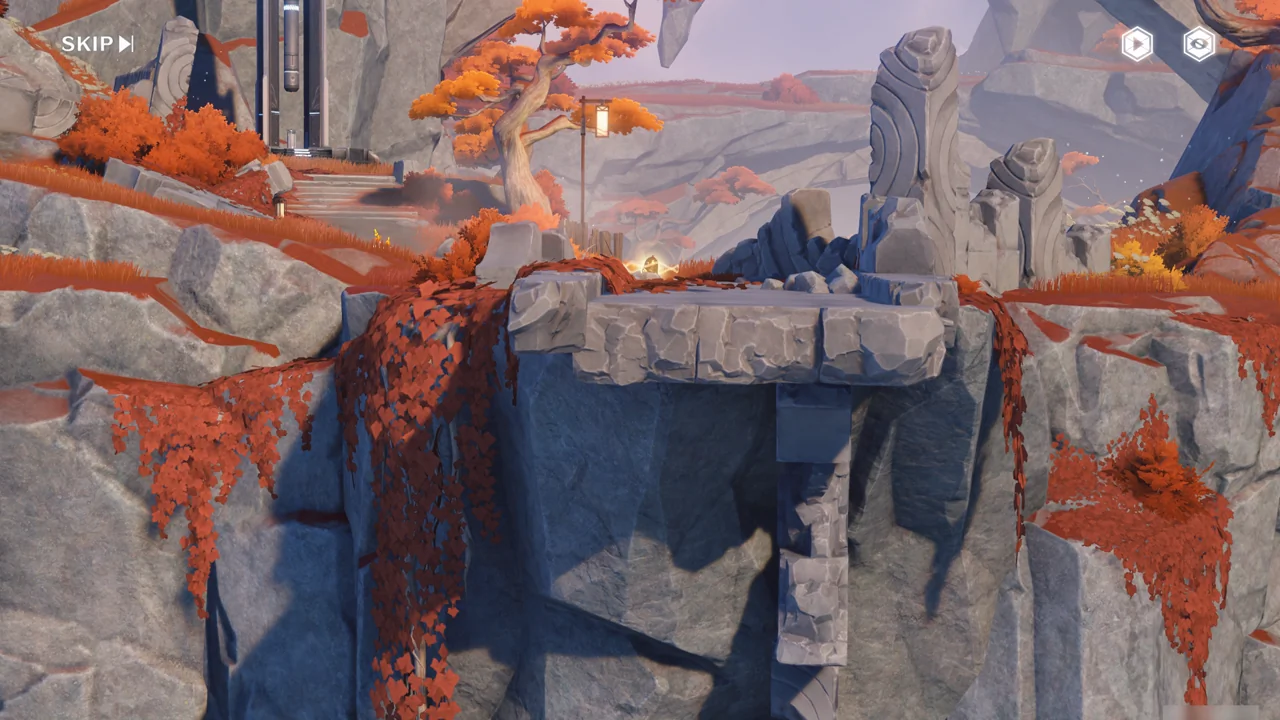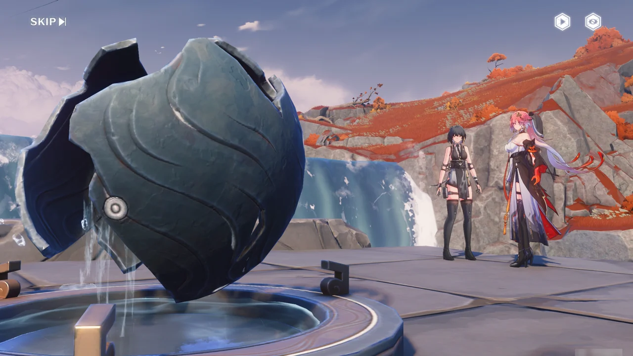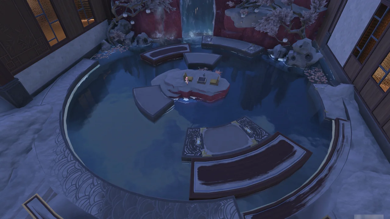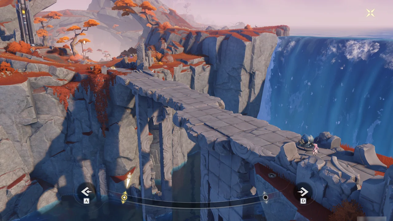 연못 한가운데 있는 돌탁자 위의 꽃병을 돌리자, 연못의 발판이 재배열되며 폭포 뒤로 가는 길이 열렸다.