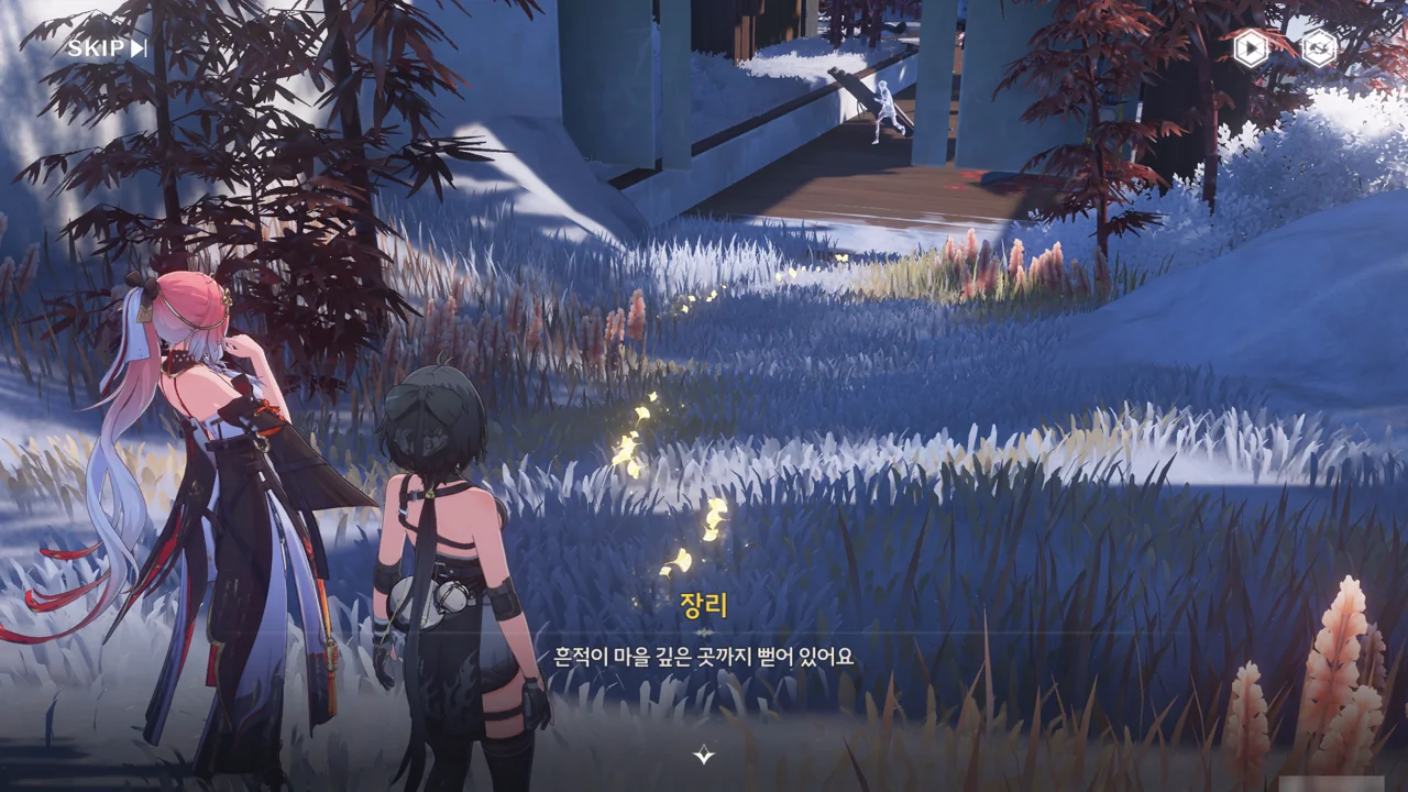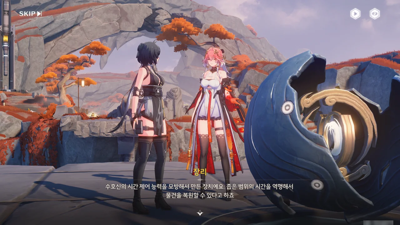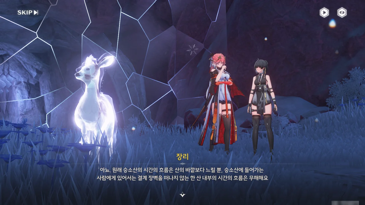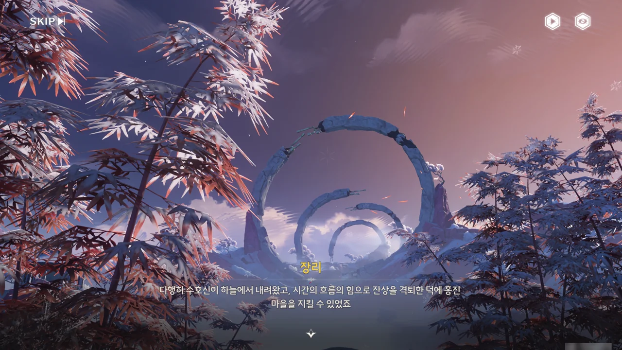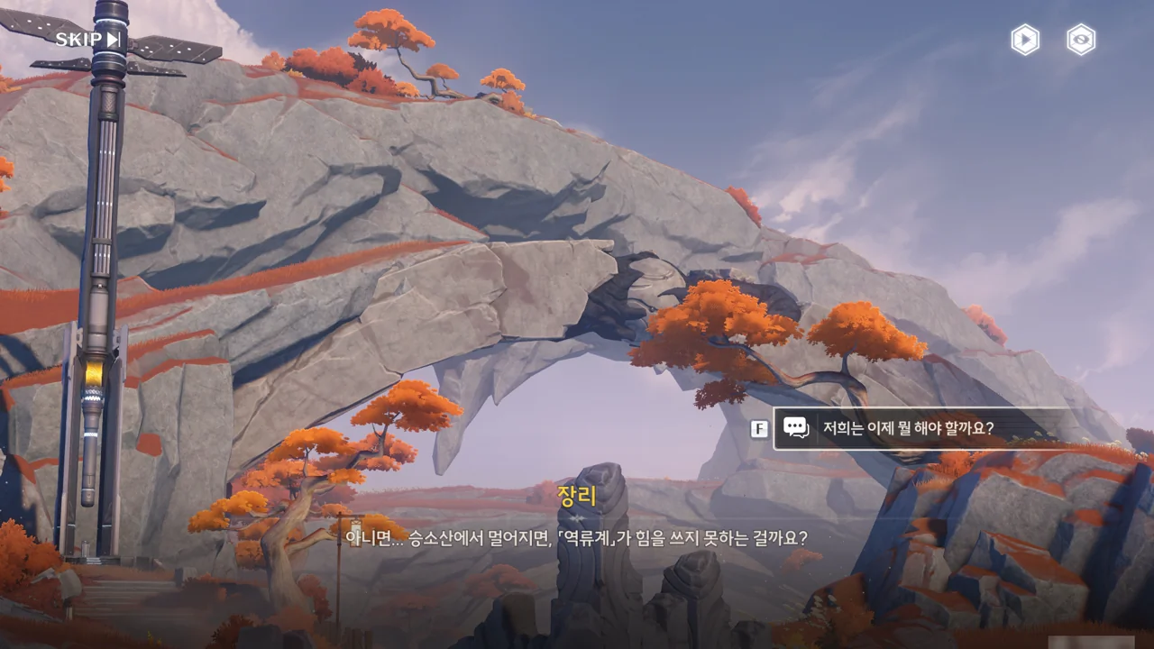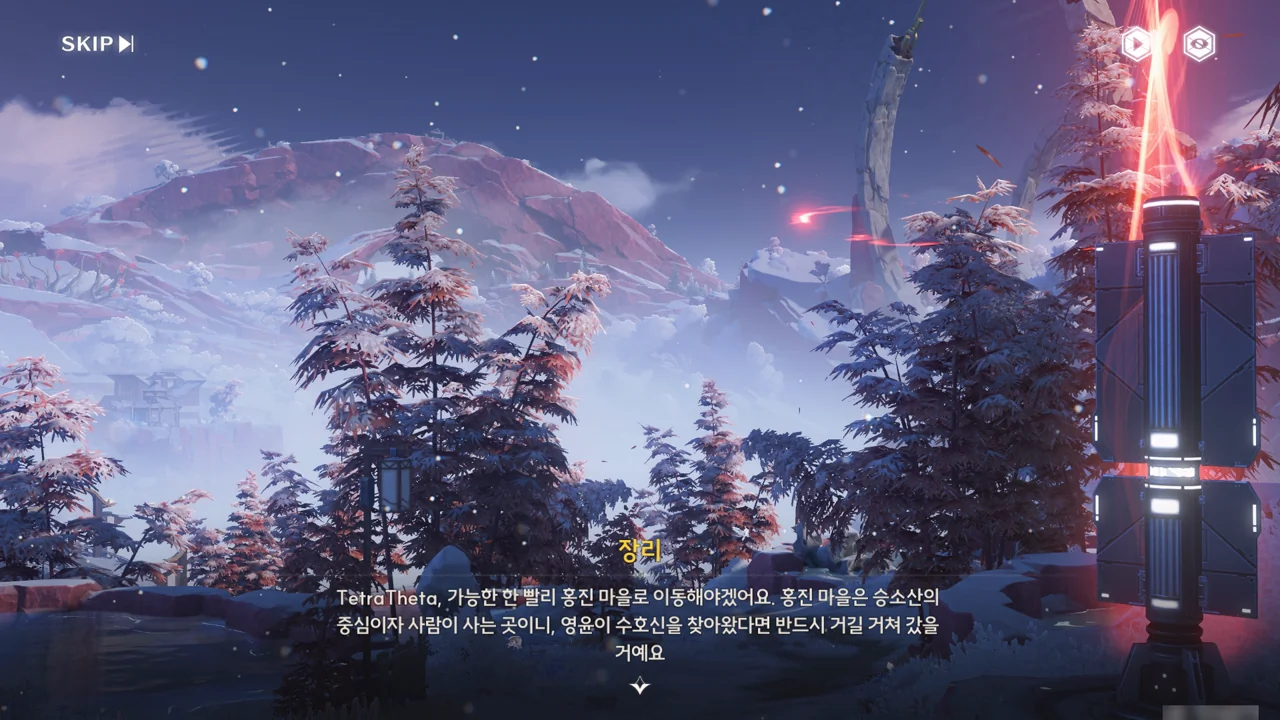 이렇게 시간 흐름이 뒤엉킨 곳에선 단말기를 통한 통신조차 힘들기 때문에, 승소산 시간 결계 내부에 위치한 마을, 홍진 마을로 이동해 직접 정보를 얻어야 한다.
