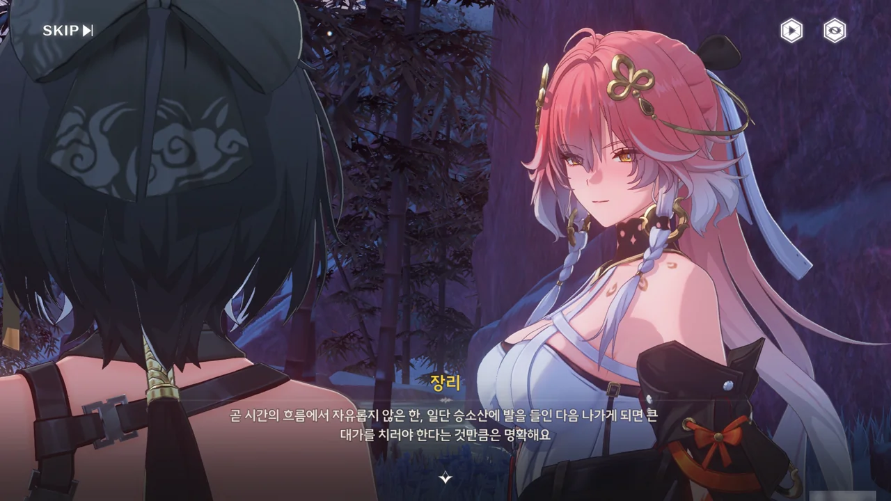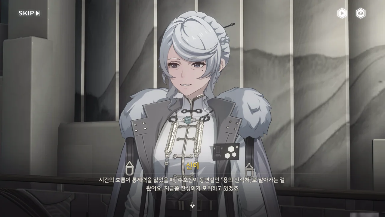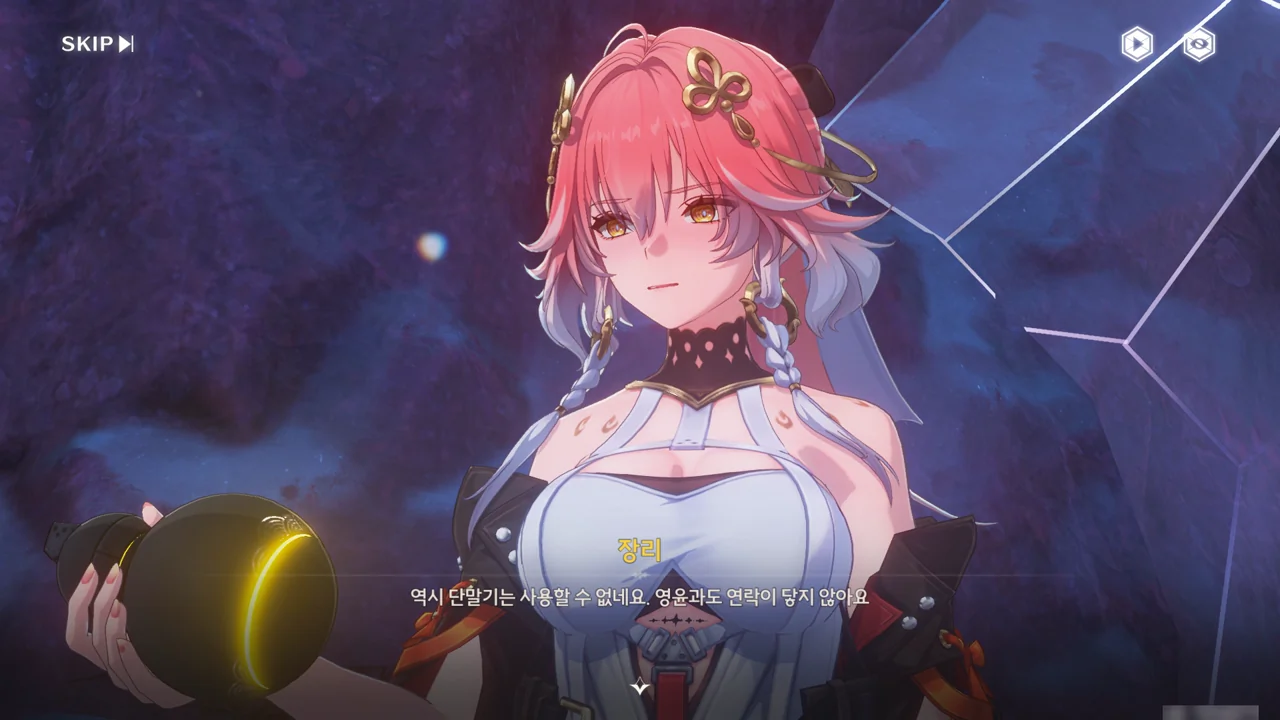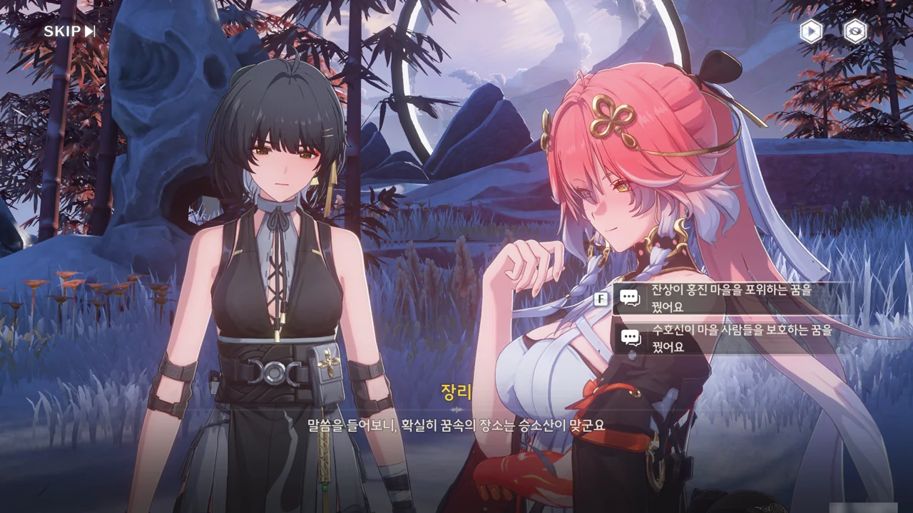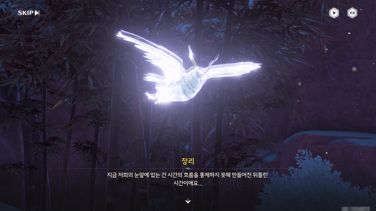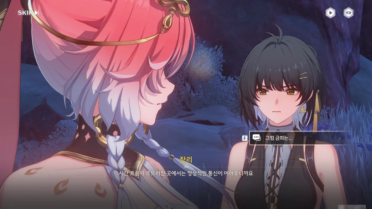 이렇게 시간 흐름이 뒤엉킨 곳에선 단말기를 통한 통신조차 힘들기 때문에, 승소산 시간 결계 내부에 위치한 마을, 홍진 마을로 이동해 직접 정보를 얻어야 한다.