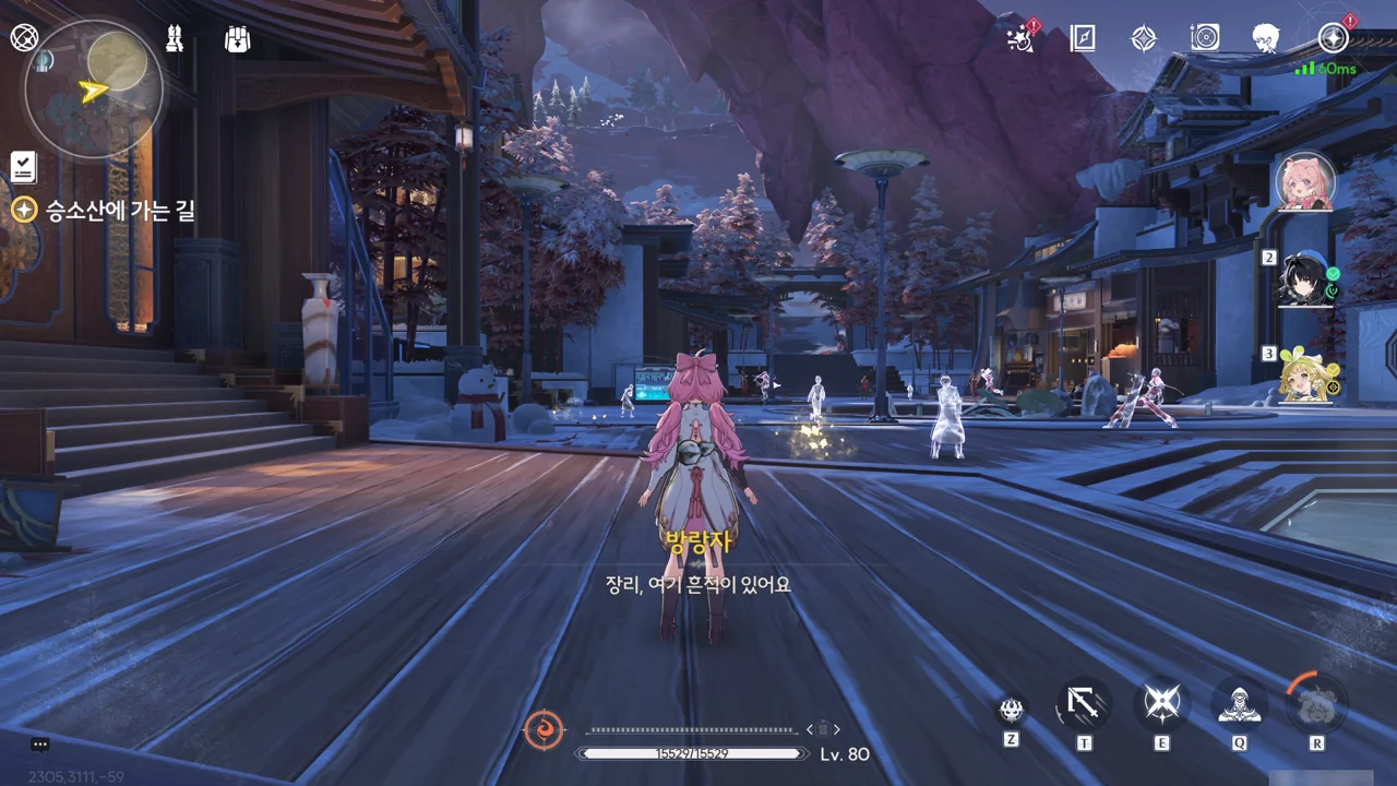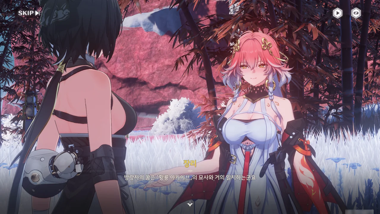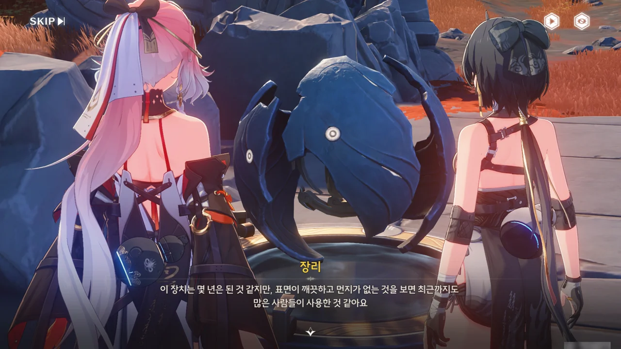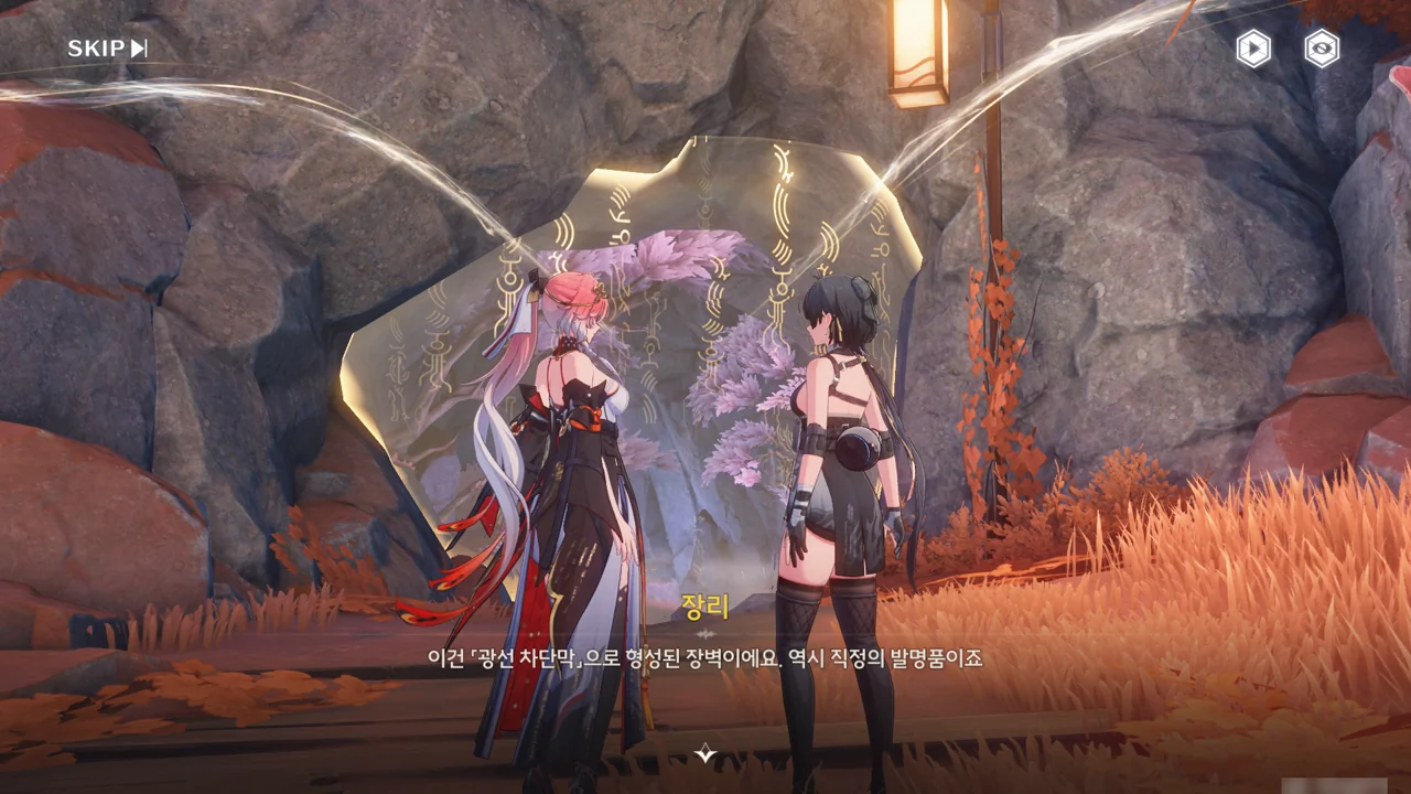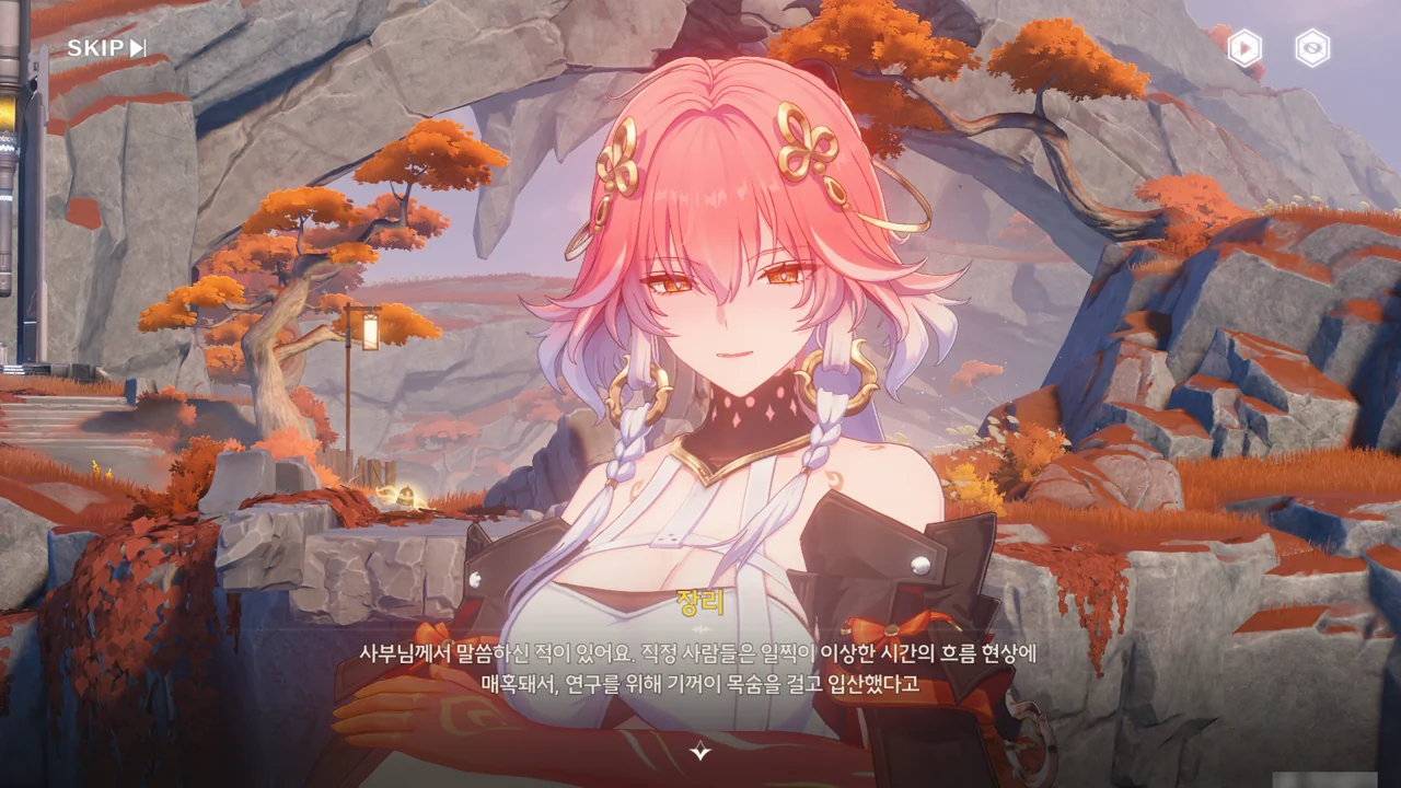 이렇게 시간 흐름이 뒤엉킨 곳에선 단말기를 통한 통신조차 힘들기 때문에, 승소산 시간 결계 내부에 위치한 마을, 홍진 마을로 이동해 직접 정보를 얻어야 한다.