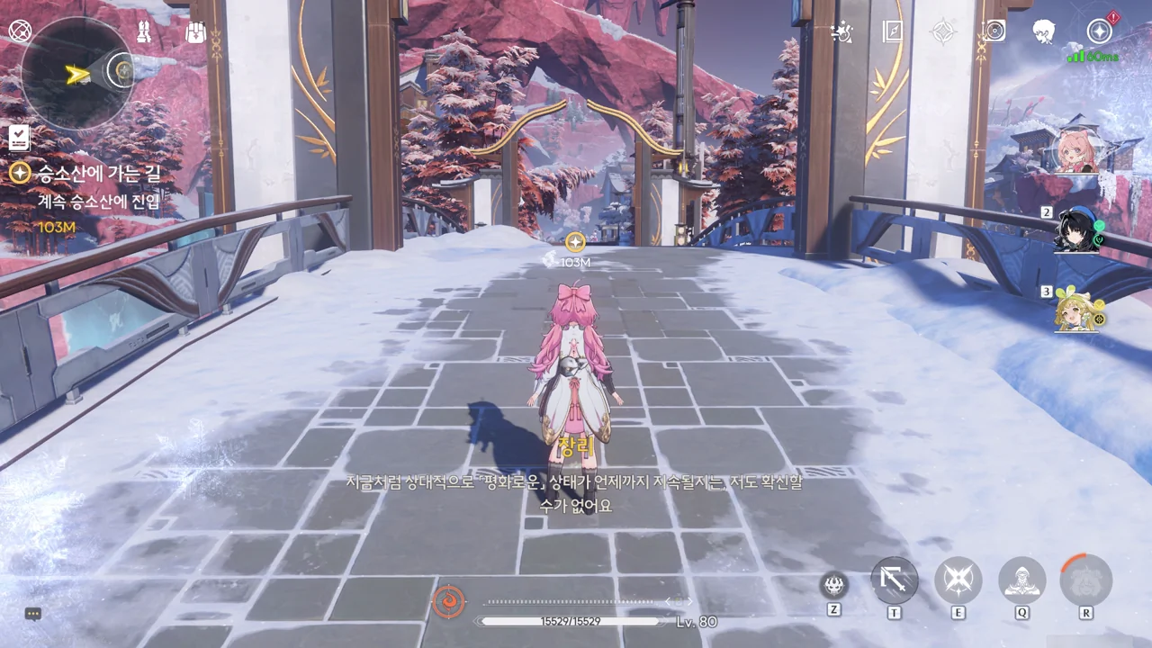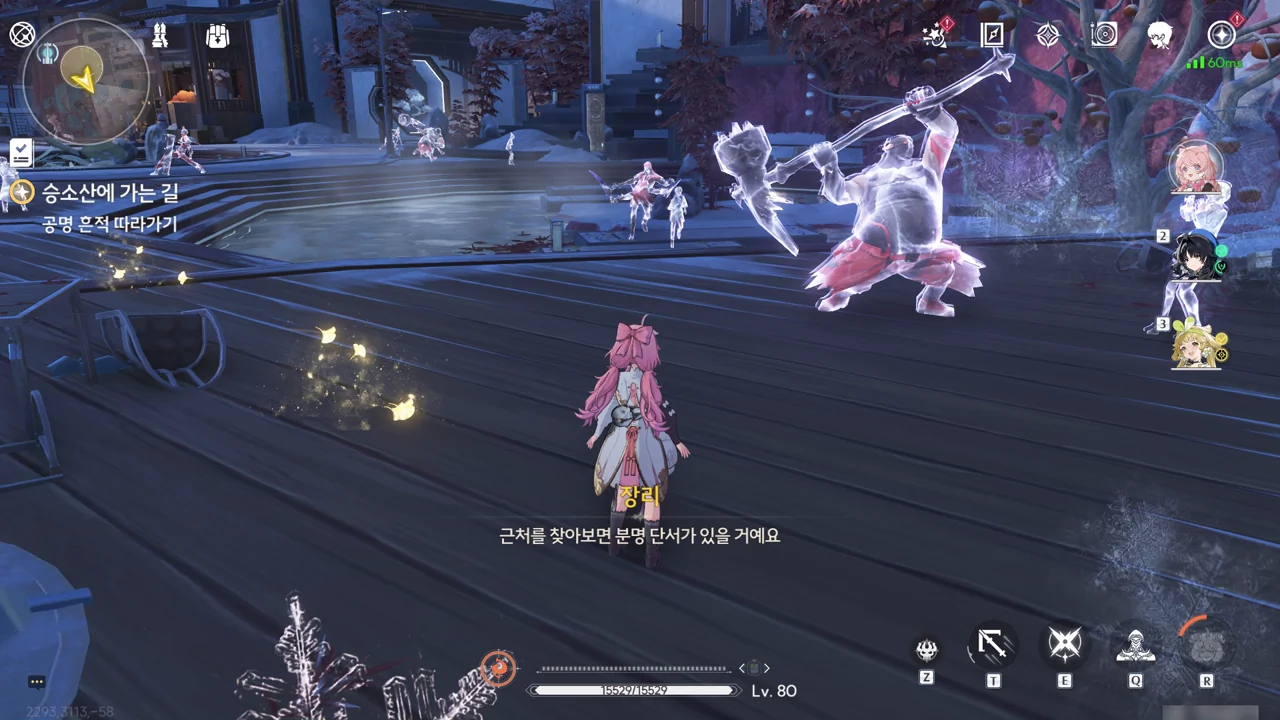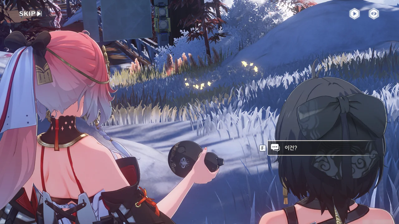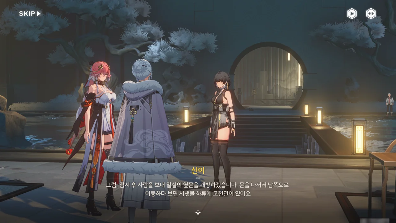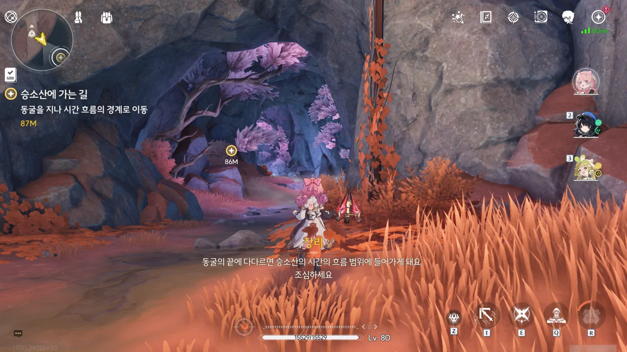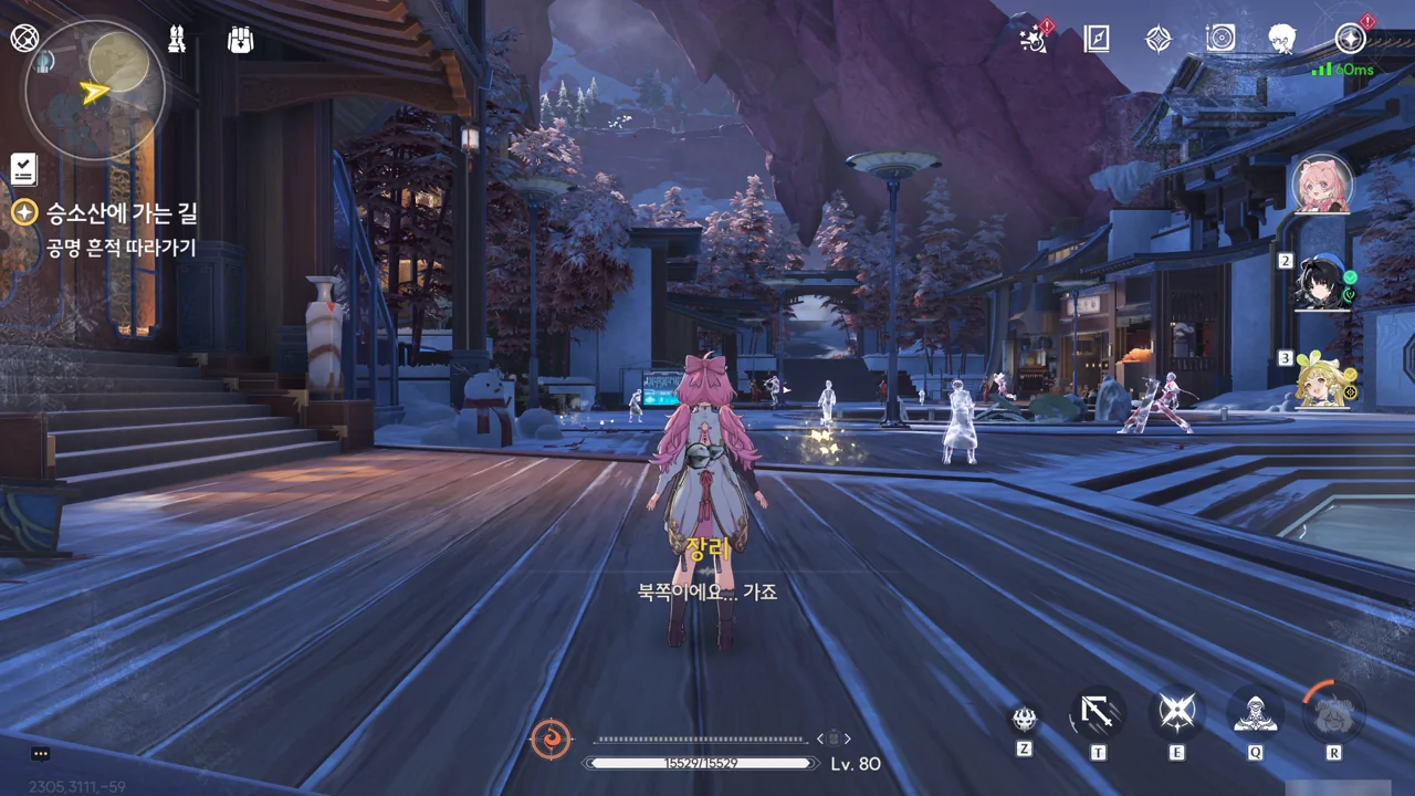 이렇게 시간 흐름이 뒤엉킨 곳에선 단말기를 통한 통신조차 힘들기 때문에, 승소산 시간 결계 내부에 위치한 마을, 홍진 마을로 이동해 직접 정보를 얻어야 한다.