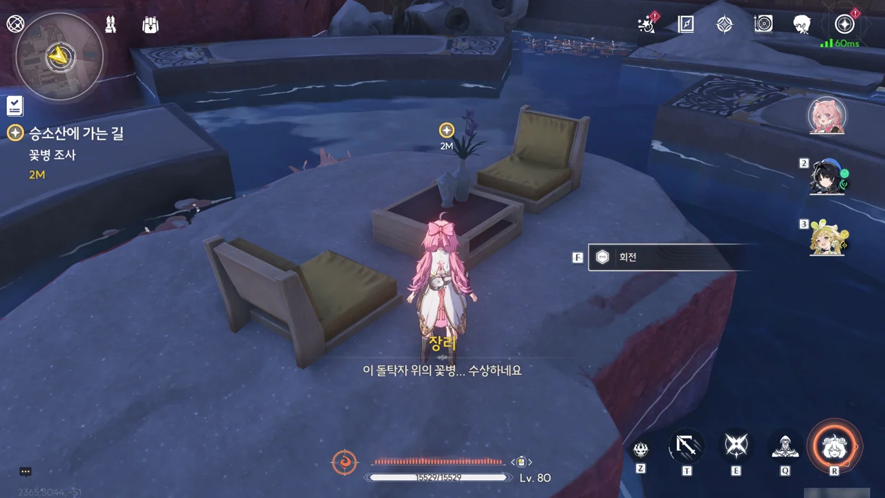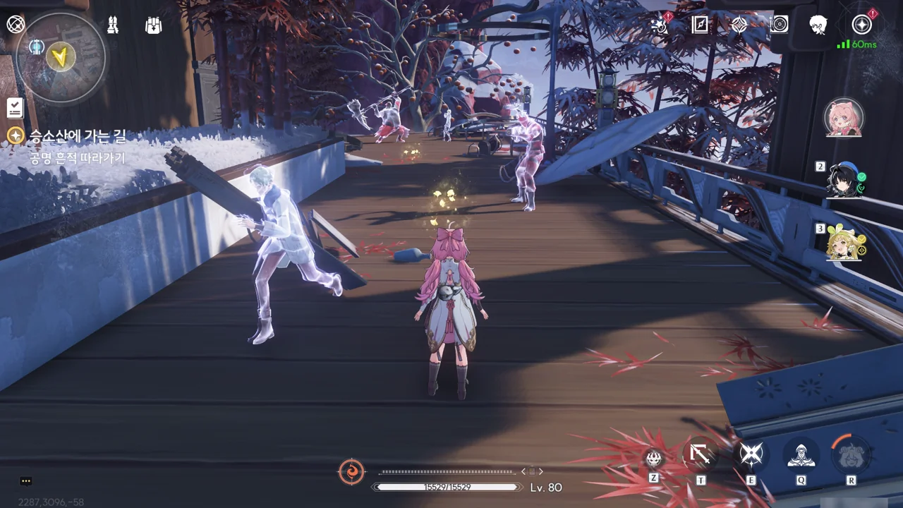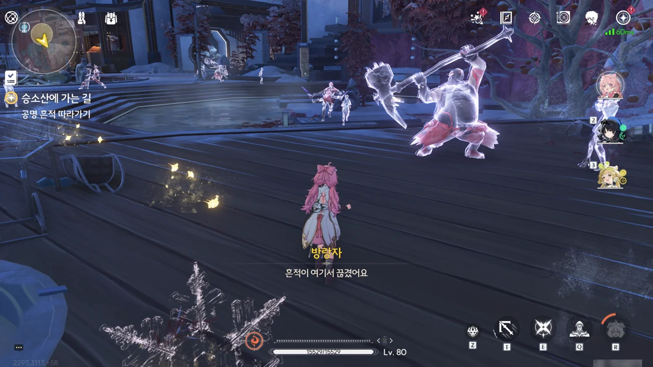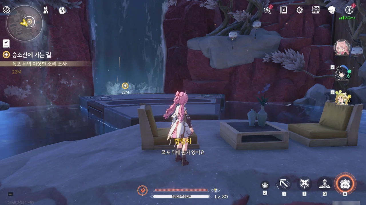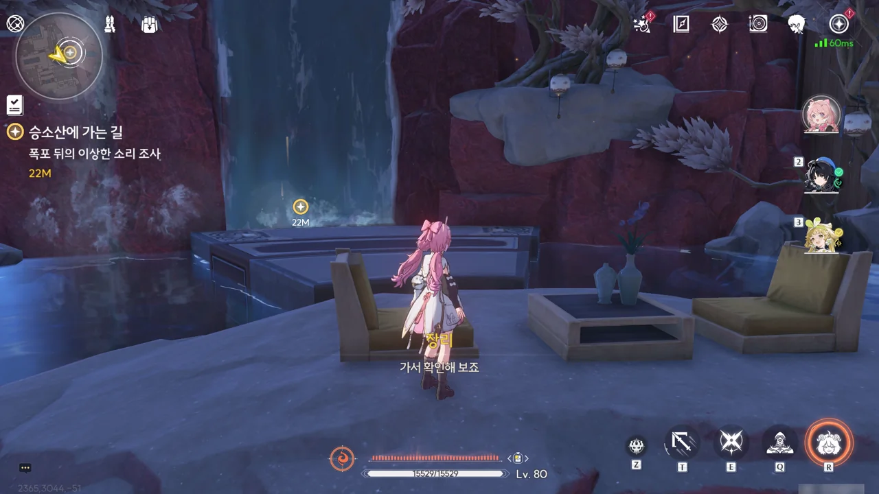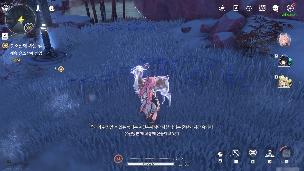 이렇게 시간 흐름이 뒤엉킨 곳에선 단말기를 통한 통신조차 힘들기 때문에, 승소산 시간 결계 내부에 위치한 마을, 홍진 마을로 이동해 직접 정보를 얻어야 한다.
