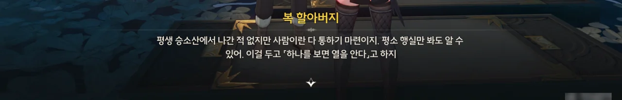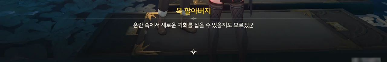복 할아버지라는 사람은 방랑자를 보더니 큰일을 할 사람이라며 자신 같은 늙은이 때문에 귀한 시간을 버리지 말고 해야 할 일을 하라고 조언한다. 그러면서도 "혼란 속에서 새로운 기회를 잡을 수 있을지도 모르겠다"라는 말을 한다.
