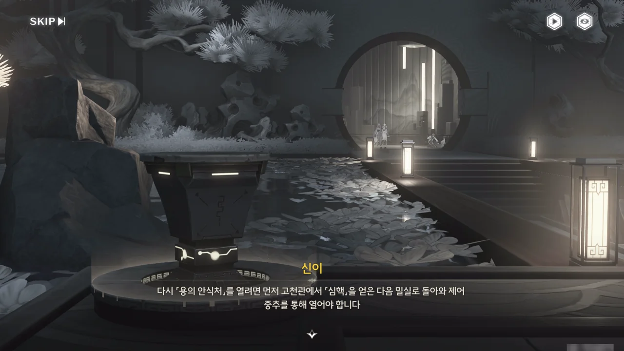 현재 봉쇄된 「용의 안식처」를 다시 열기 위해선 고천관에 있는 「심핵」을 이 밀실로 가져와야 한다.