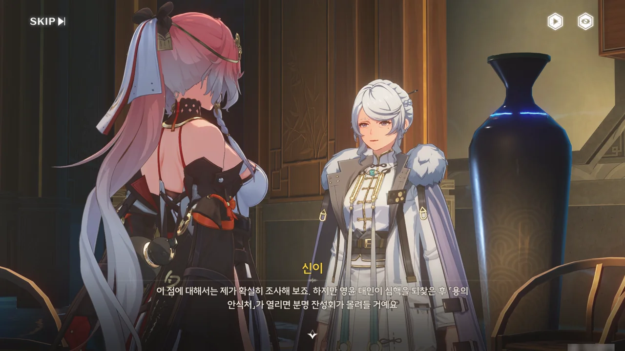 시간의 흐름이 뒤틀렸을 때, 신이가 「용의 뿔」이 동면실인 「용의 안식처」로 날아가는 것을 보았다고 한다. 「용의 안식처」에는 방어 시스템이 있어, 수호신이 들어오면 작동하도록 되어있는데, 이를 이용해 잔성회의 움직임을 관찰하고 「용의 안식처」 주변을 포위하고 있던 일부 잔성회를 처치했다고 한다.