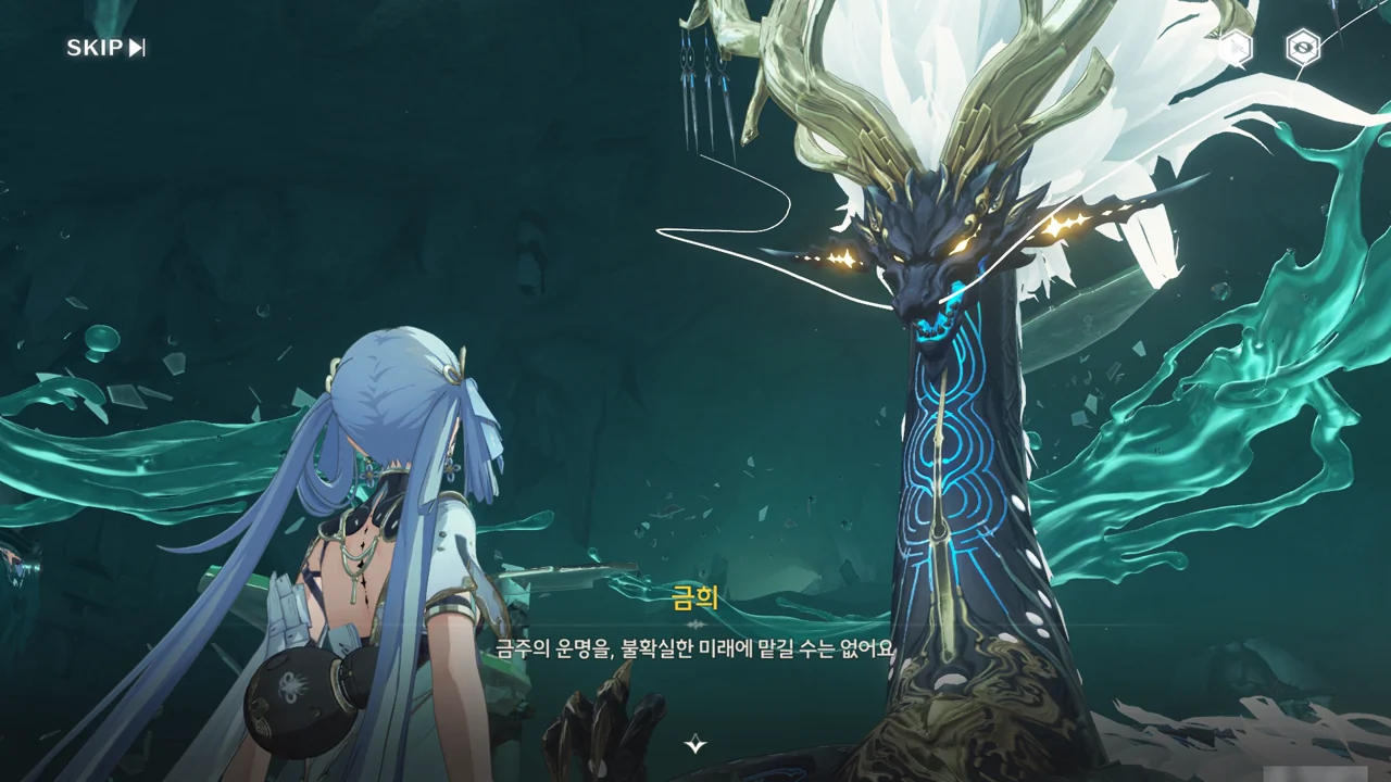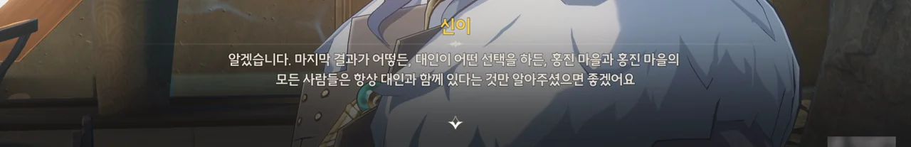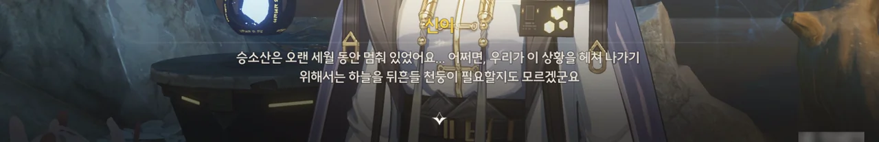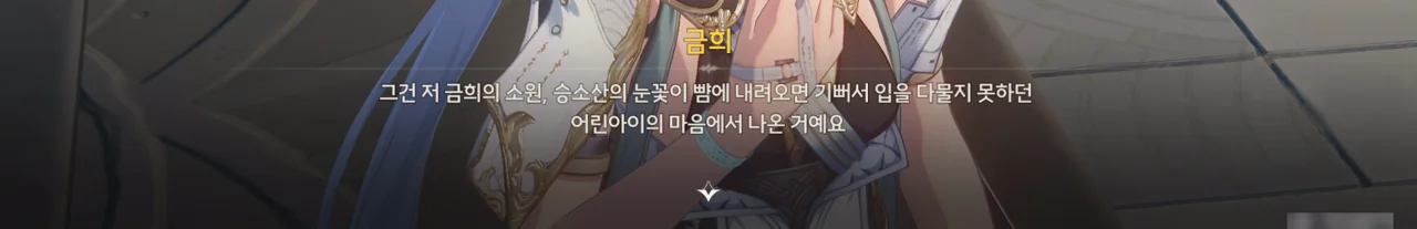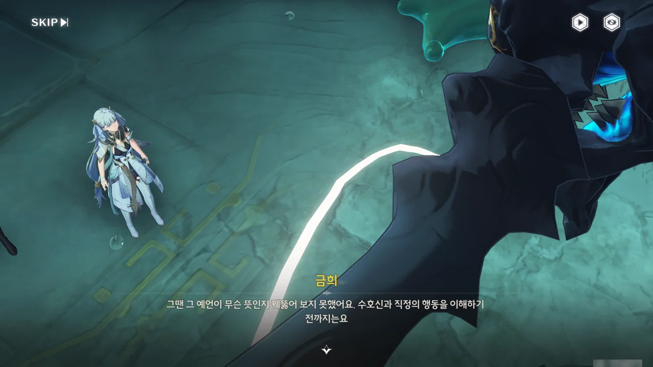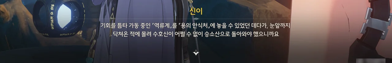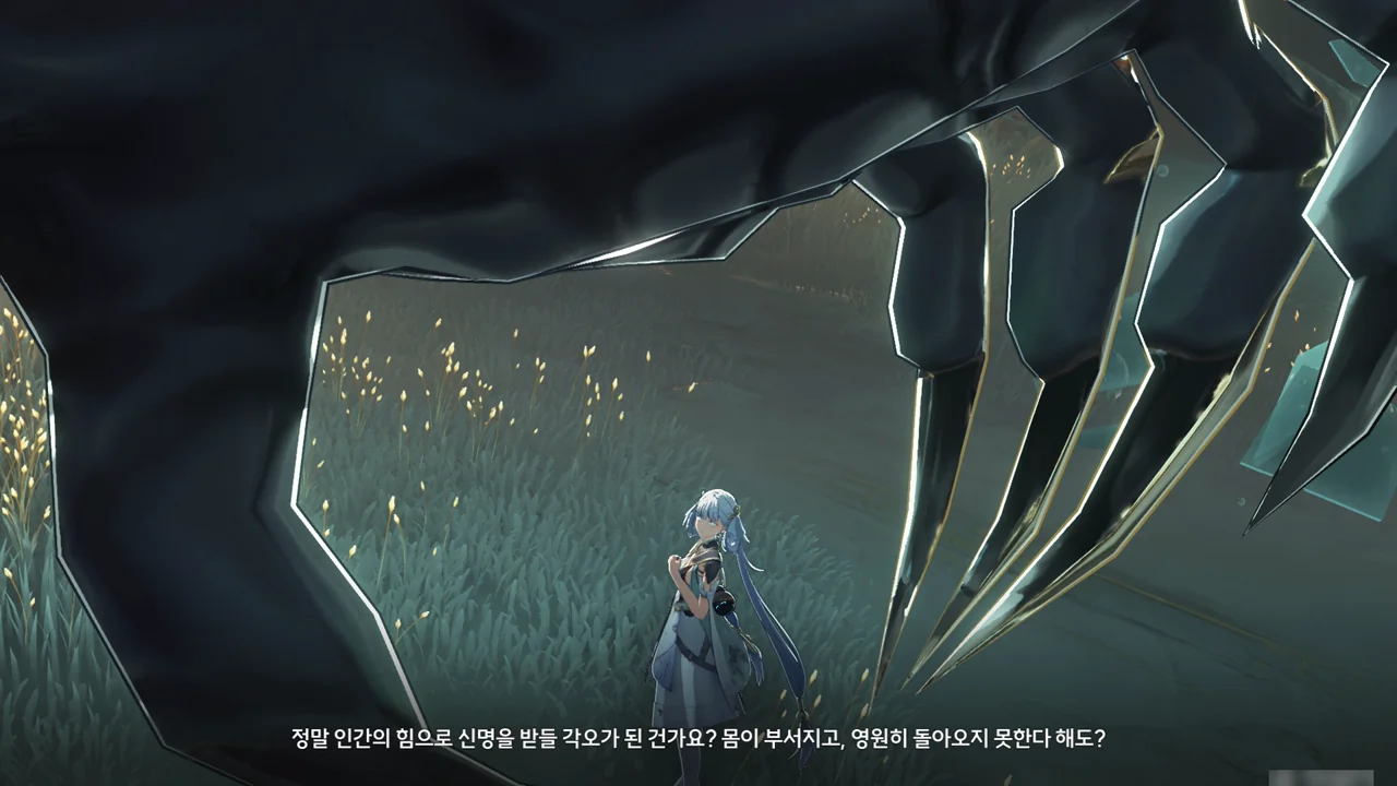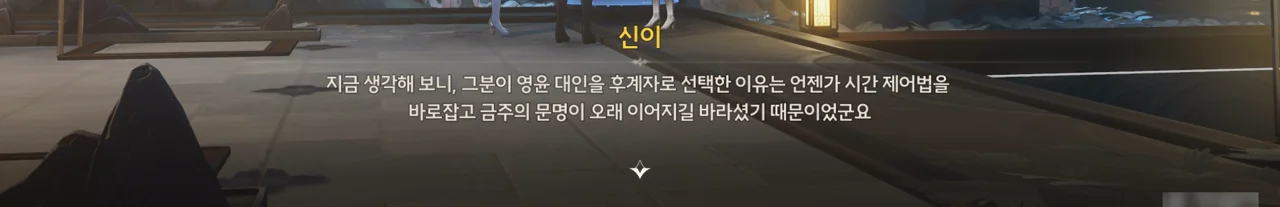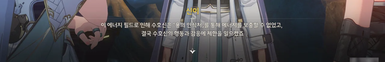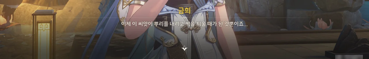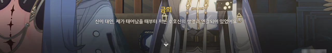 겉으로 봐선 「용의 뿔」이 금희에게 2차 공명의 위험성을 강조하고 '과연 네가 내 힘을 이어받을 수 있겠냐?'라고 말하는 것 같지만, 내 눈에는 이 상황이 용의 뿔이 금희 뒤에 있는 방랑자에게 '저 진짜 이럴 수밖에 없어요?!'라고 자신의 행동의 정당성을 설파하는 것으로만 보인다.