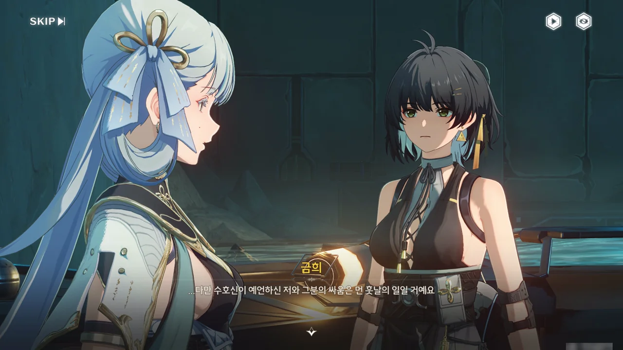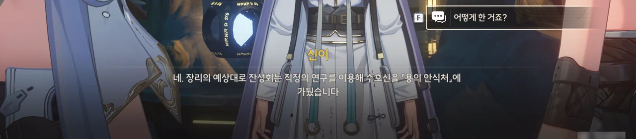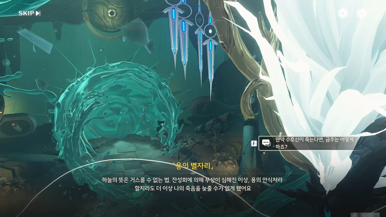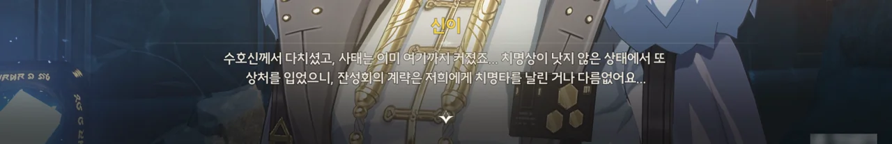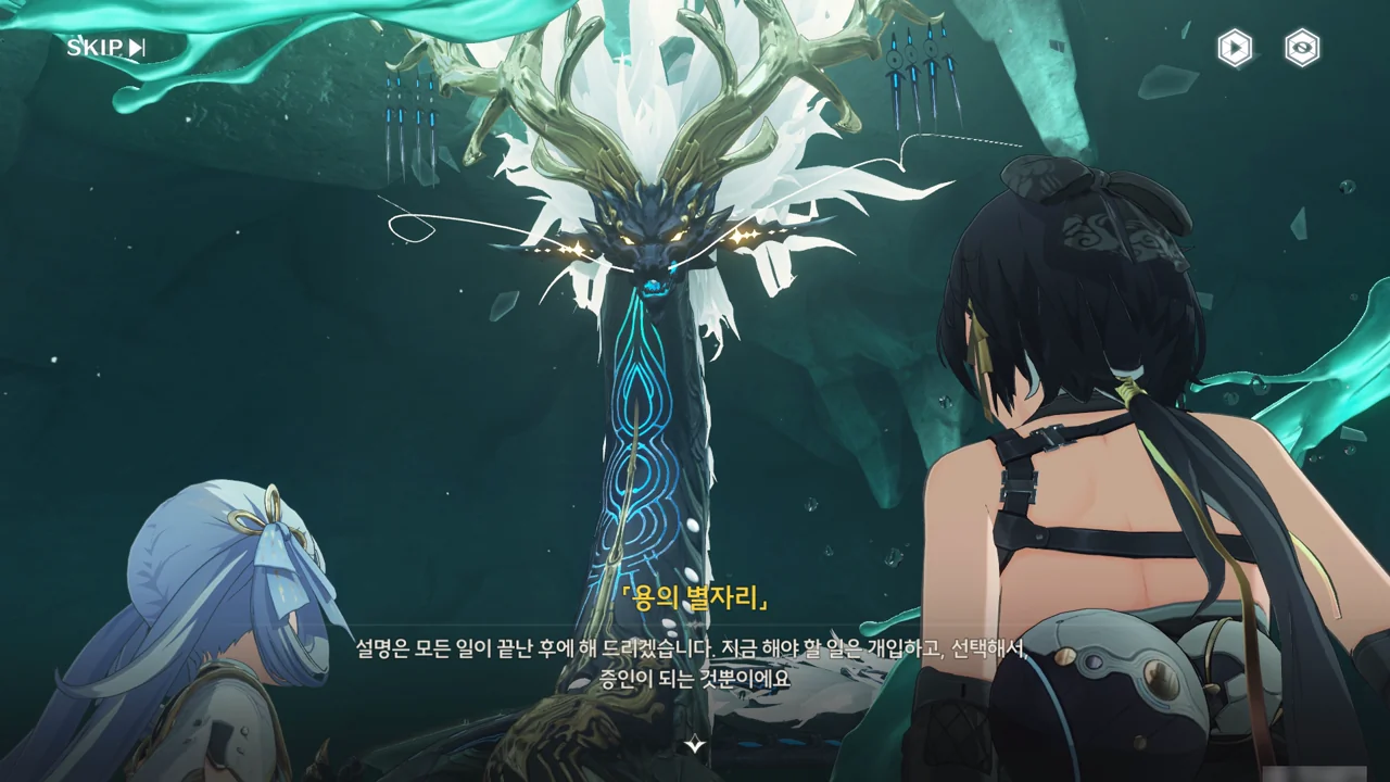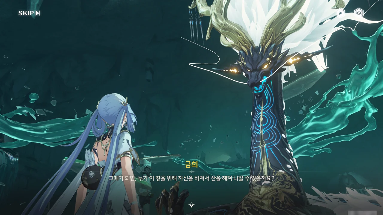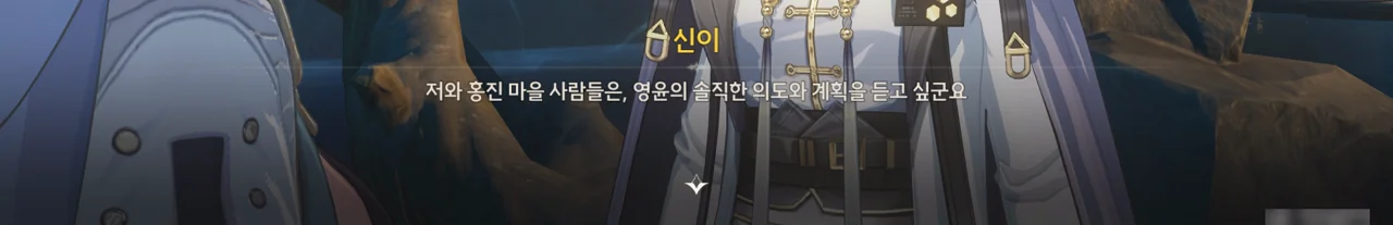 겉으로 봐선 「용의 뿔」이 금희에게 2차 공명의 위험성을 강조하고 '과연 네가 내 힘을 이어받을 수 있겠냐?'라고 말하는 것 같지만, 내 눈에는 이 상황이 용의 뿔이 금희 뒤에 있는 방랑자에게 '저 진짜 이럴 수밖에 없어요?!'라고 자신의 행동의 정당성을 설파하는 것으로만 보인다.