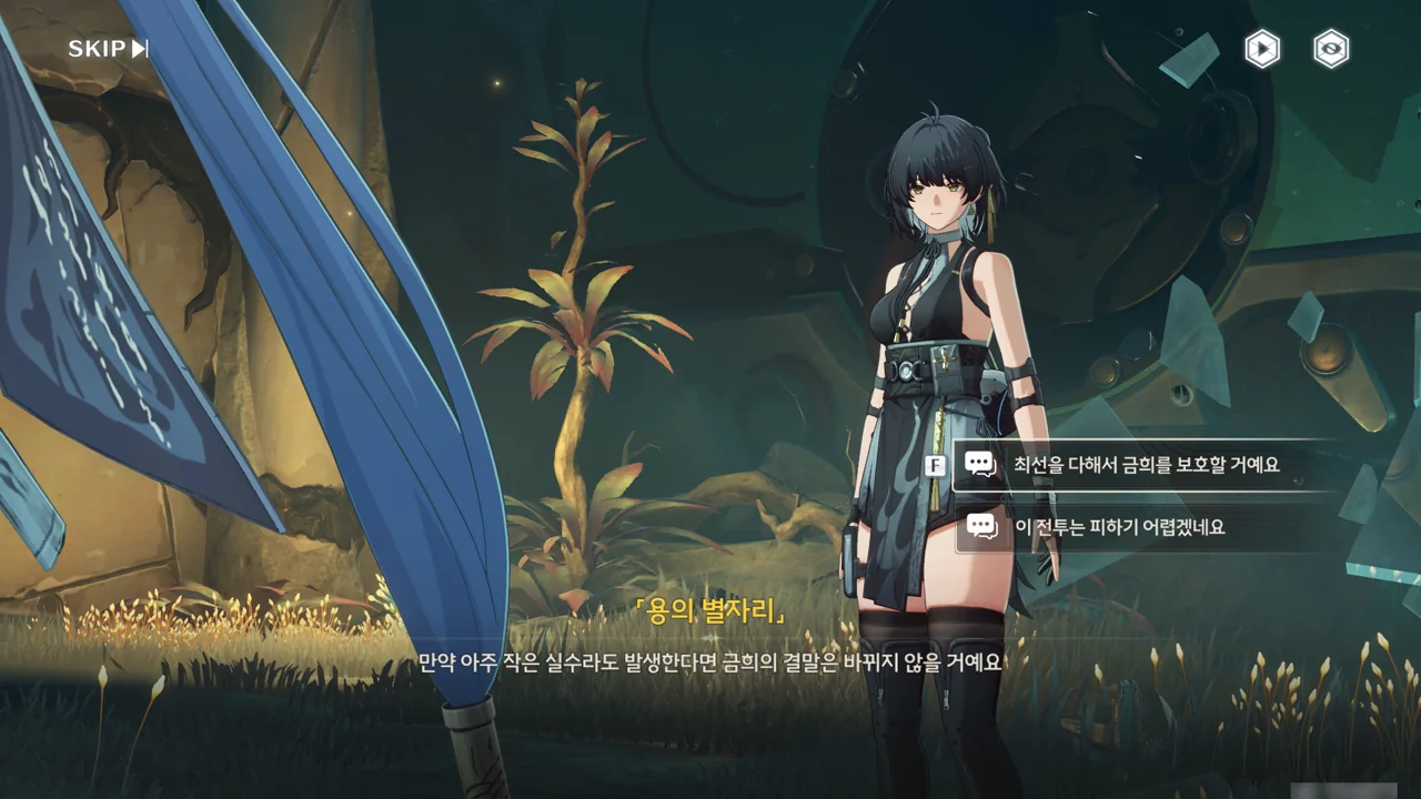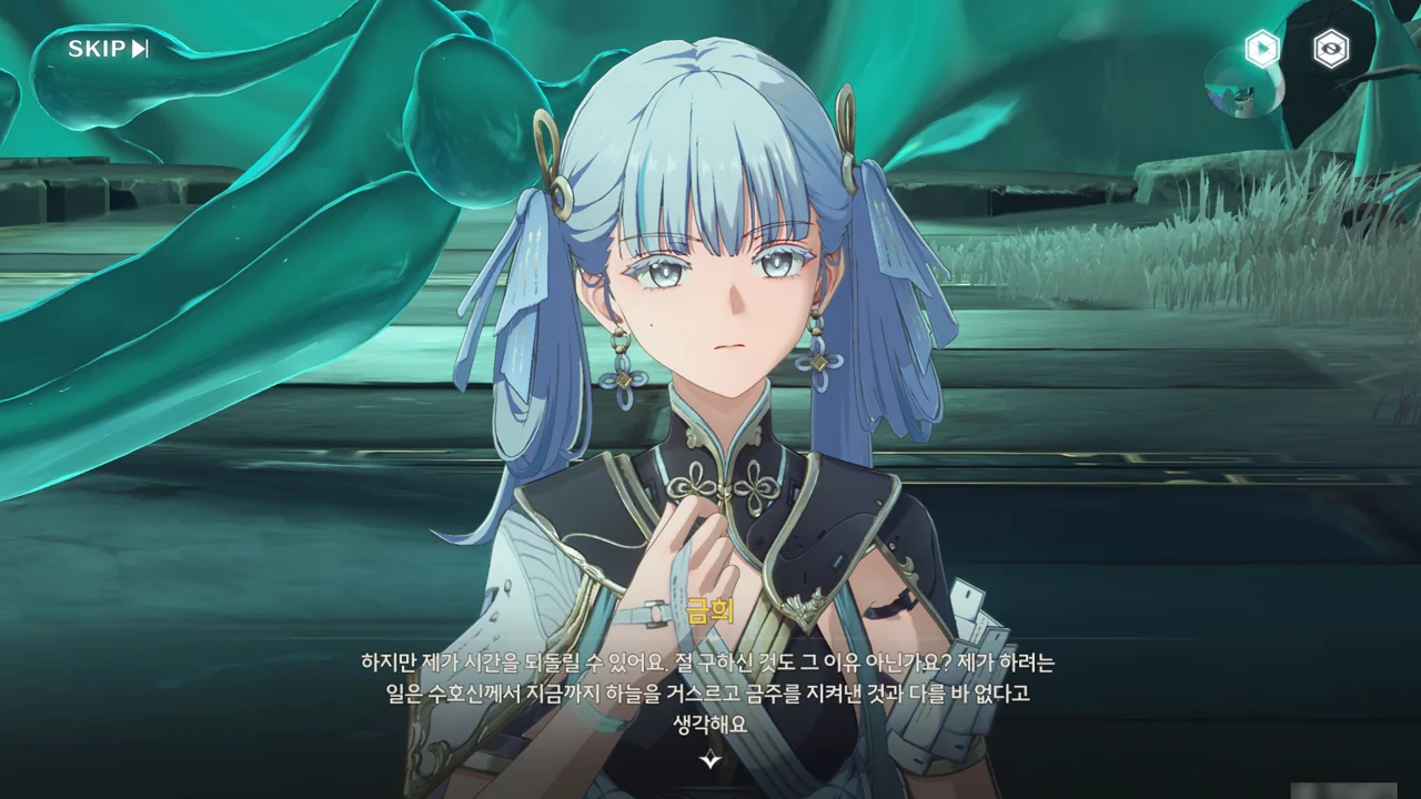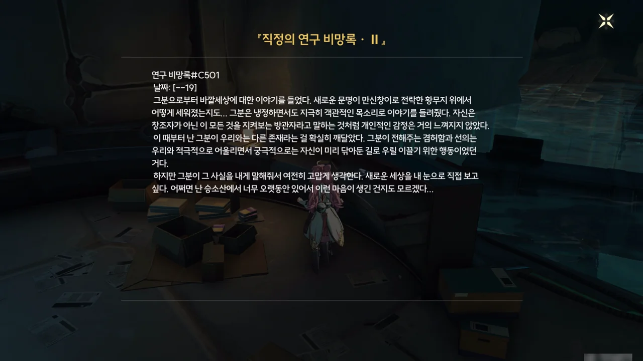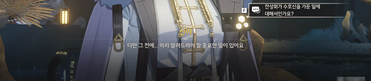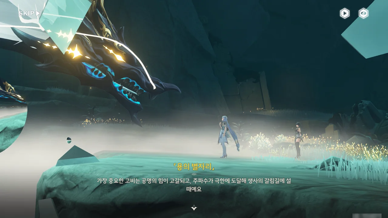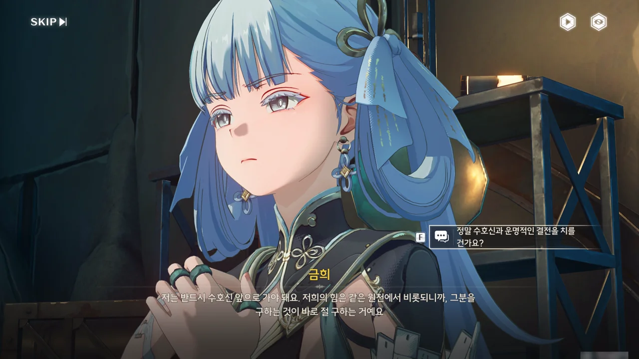 겉으로 봐선 「용의 뿔」이 금희에게 2차 공명의 위험성을 강조하고 '과연 네가 내 힘을 이어받을 수 있겠냐?'라고 말하는 것 같지만, 내 눈에는 이 상황이 용의 뿔이 금희 뒤에 있는 방랑자에게 '저 진짜 이럴 수밖에 없어요?!'라고 자신의 행동의 정당성을 설파하는 것으로만 보인다.