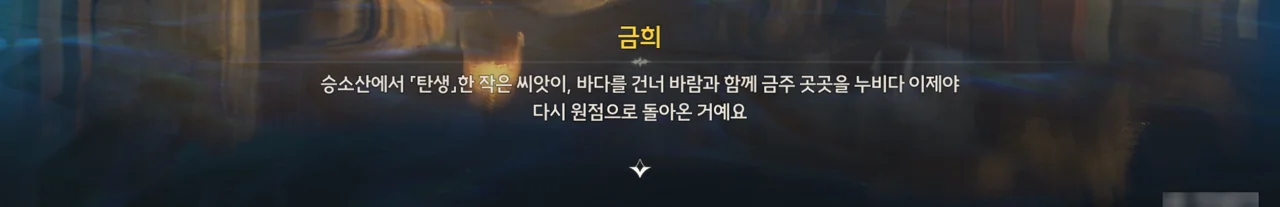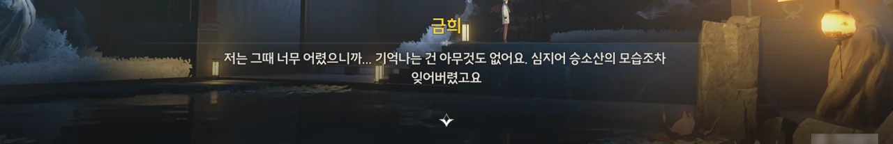 과거 잔상이 승소산에 쳐들어 왔을 때, 금희의 어머니는 죽음을 무릅쓰고 금희를 지키려 했으나, 잔상을 이기지 못하고 숨을 거두었다. 공명자의 기운을 감지한 「용의 뿔」이 서둘러 달려왔지만, 홀로 남은 금희 역시 목숨을 잃은 지 오래였다. 금희의 시신을 회수한 용의 뿔은 7일 밤낮을 몰두해 시간을 되돌린 끝에 금희를 다시 살려내는 데 성공했다.