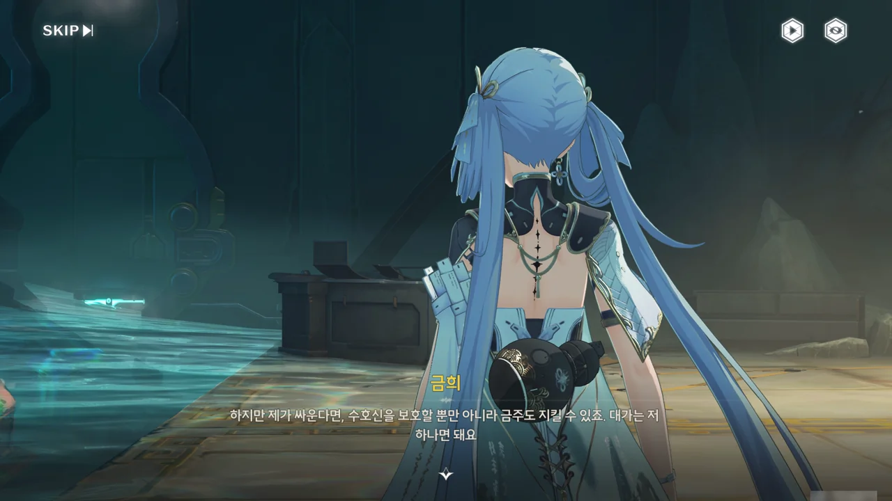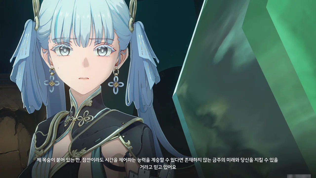 자신이 오버클럭으로 인해 겪을 고통은 지금 뒤틀린 시간 속에 갇힌 생명들이 느낄 고통에 비하면 아무것도 아니며, 지금 여기서 앞으로 나아가지 않는다면 금주는 분명 멸망의 길을 걷게 될 테지만, 용의 뿔과 싸운다면 수호신은 물론이요 금주의 모두를 지킬 수 있으니 이득이라고 말한다.