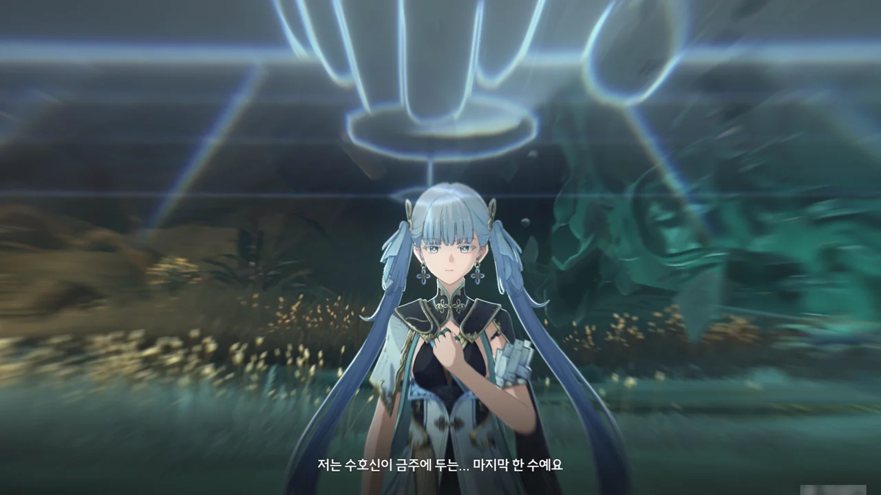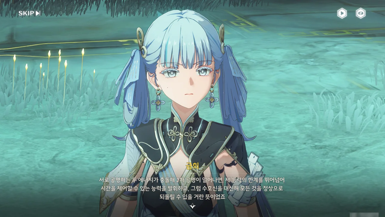 방랑자가 할 수 있는 건 그저 금희와 「용의 뿔」의 싸움의 증인이 되어, 금희의 공명의 힘이 고갈되어 주파수가 극한에 도달해 생사의 갈림길에 섰을 때, 용의 뿔에게 시간 제어 능력을 허락해 주는 것뿐이다.