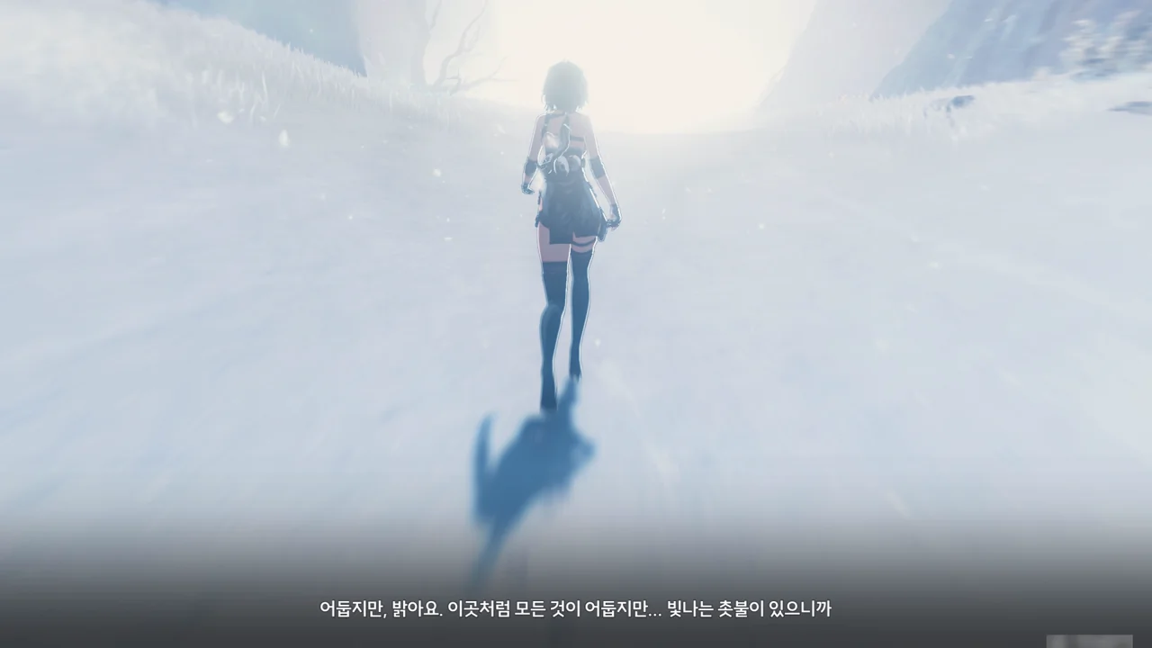 회상 속 금희가 질문에 답하며 "빛나는 촛불이 있으니까"라고 말할 때, 앞서 나가는 방랑자의 모습에 화면에 들어온다. "쉽지 않기 때문에 어둠 속에서 유난히… 밝게 보이는 거겠죠"라고 말할 때에는 미끄러져 넘어질 뻔한 금희를 방랑자가 붙잡아 일으켜 세워주며 함께 「용의 뿔」과 마주하는 장면이 나온다.