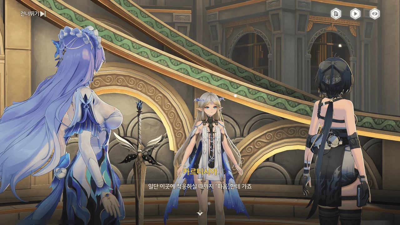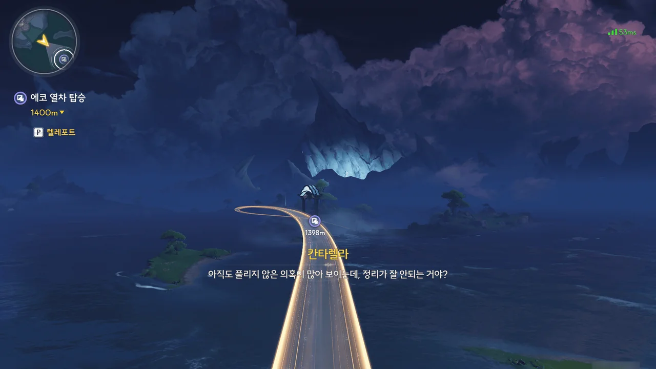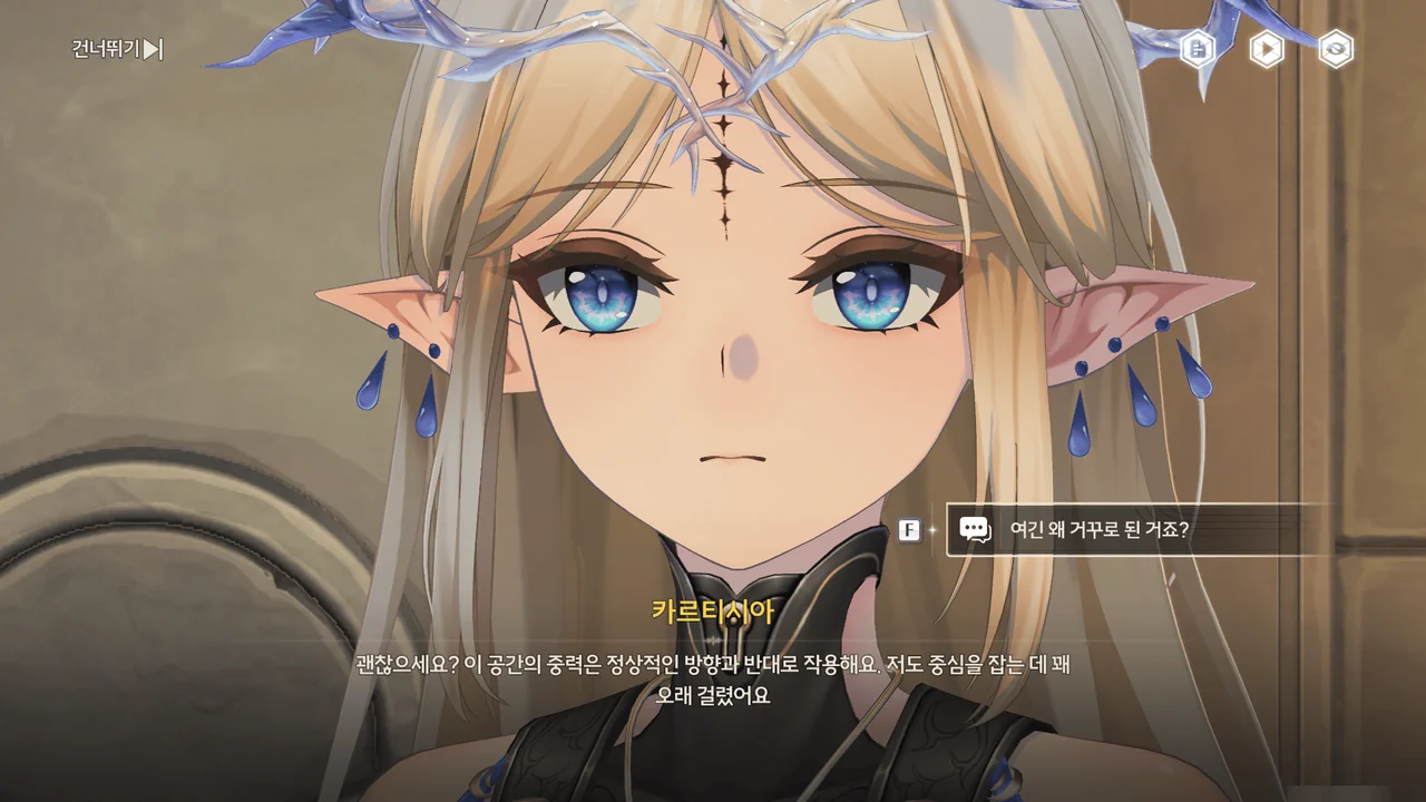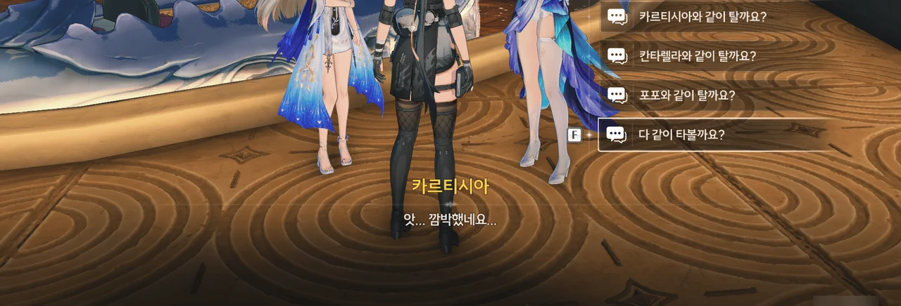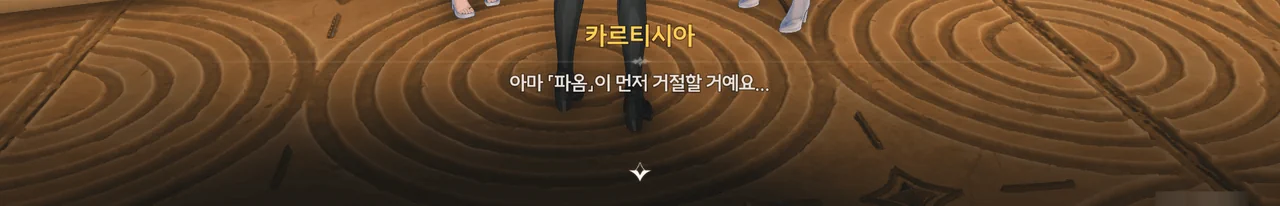 카르티시아가 방랑자 일행에게 이곳의 중력에 적응할 겸, 곤돌라 「파옴」에게 가자고 한다.