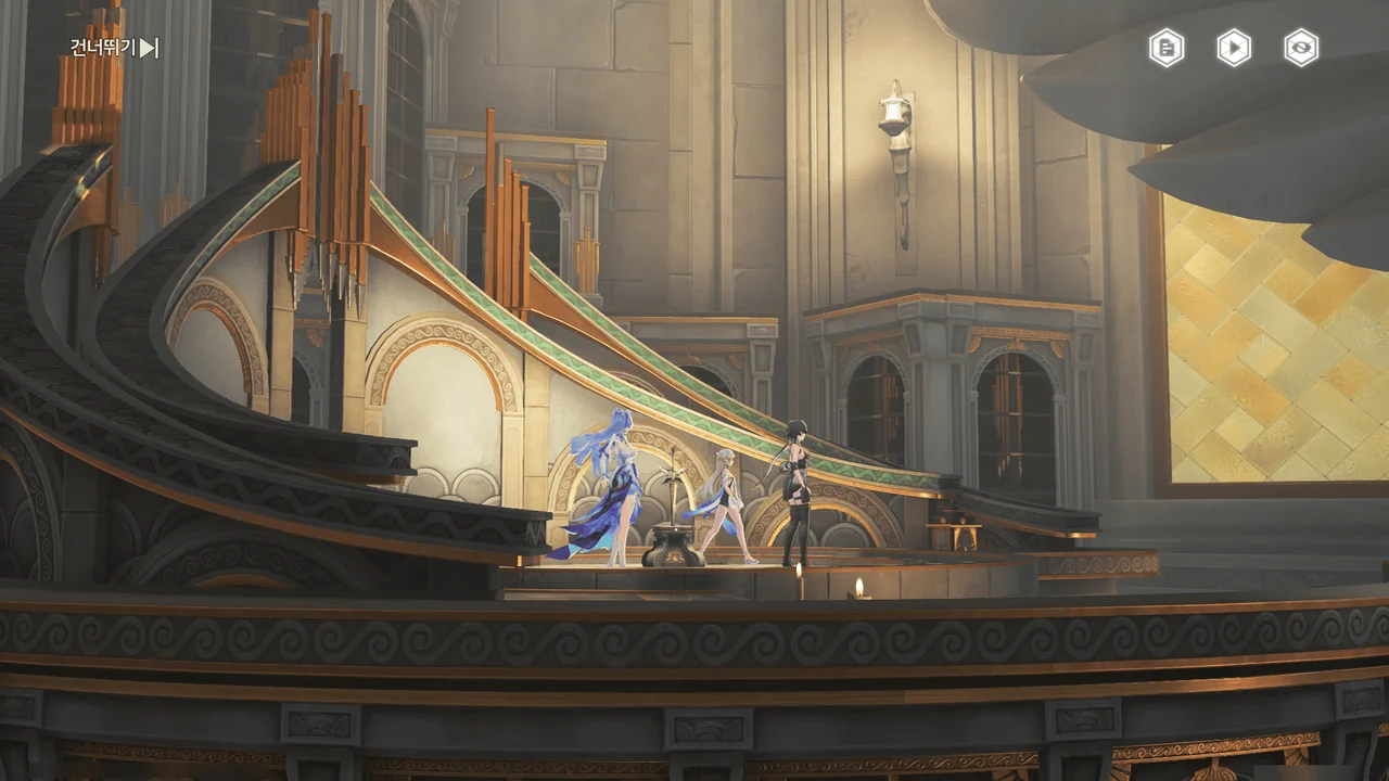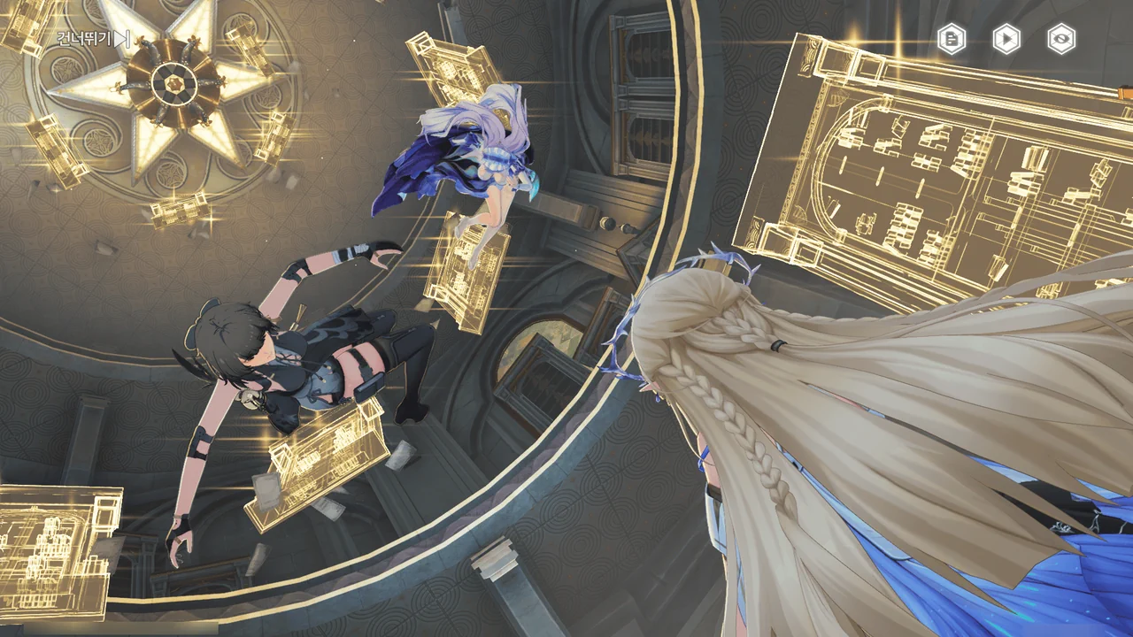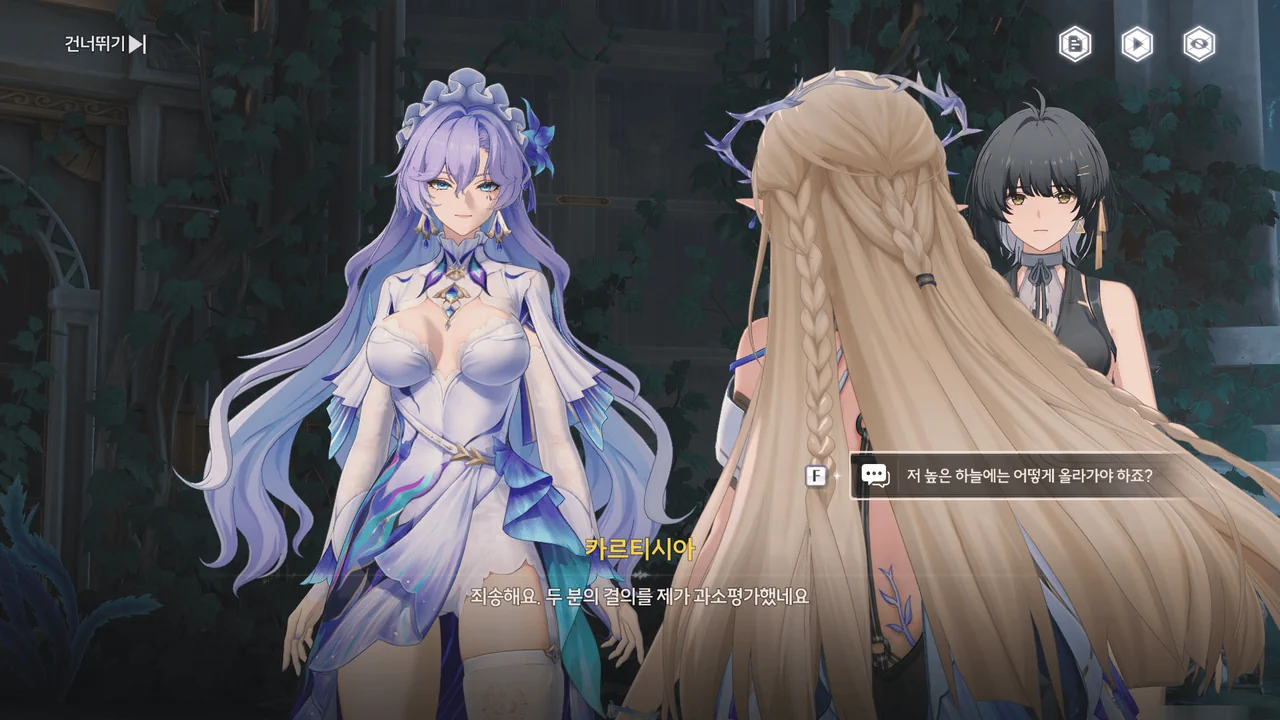카르티시아가 방랑자 일행에게 이곳의 중력에 적응할 겸, 곤돌라 「파옴」에게 가자고 한다.