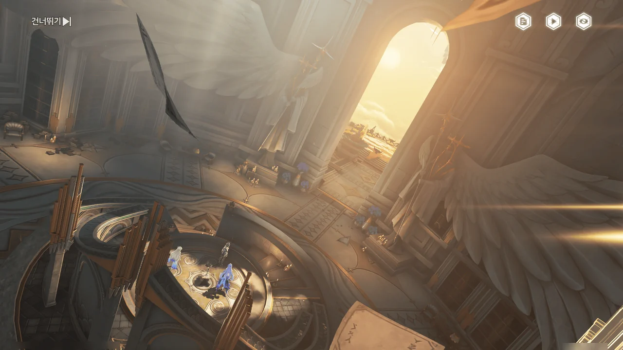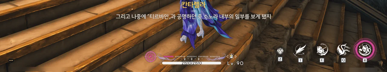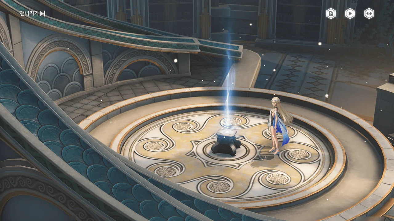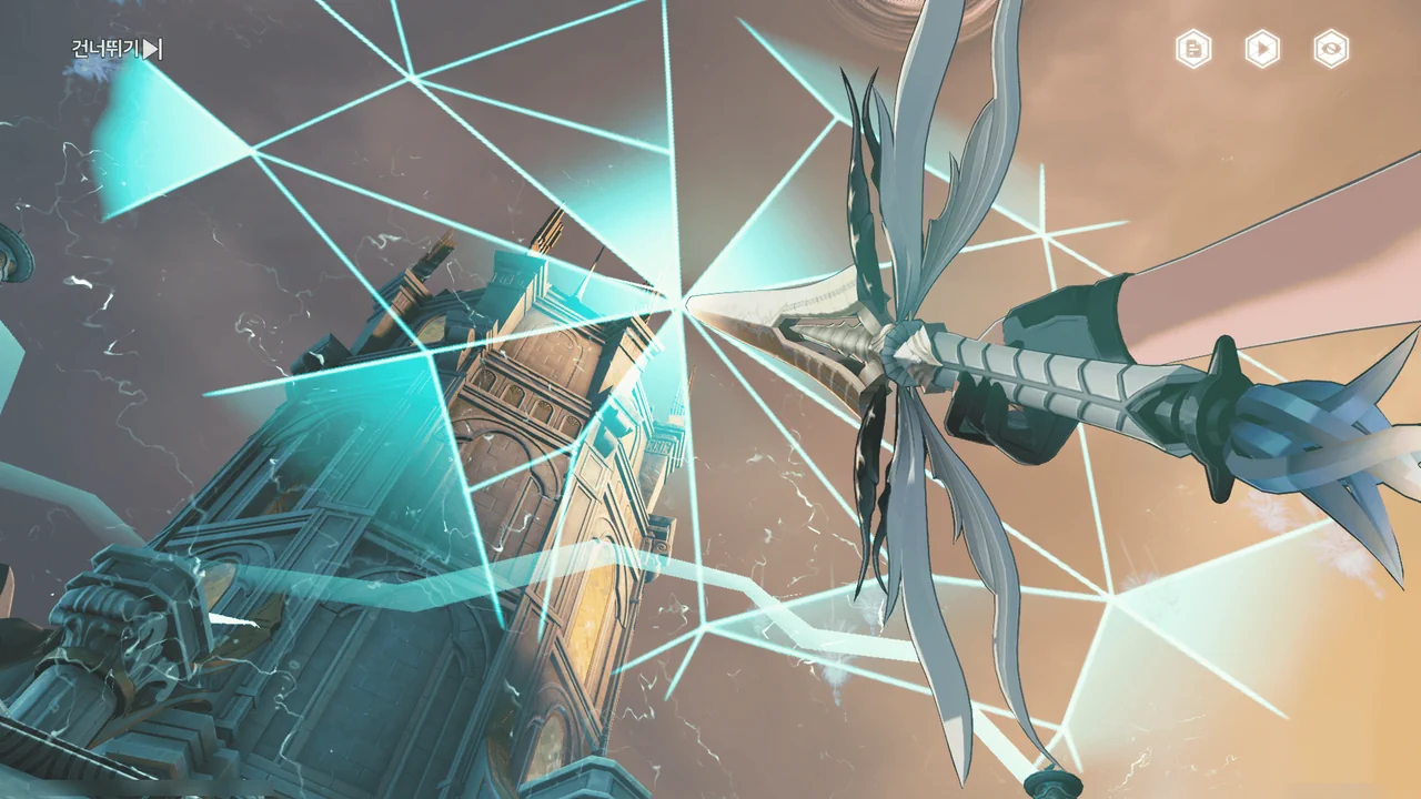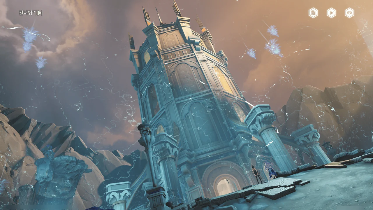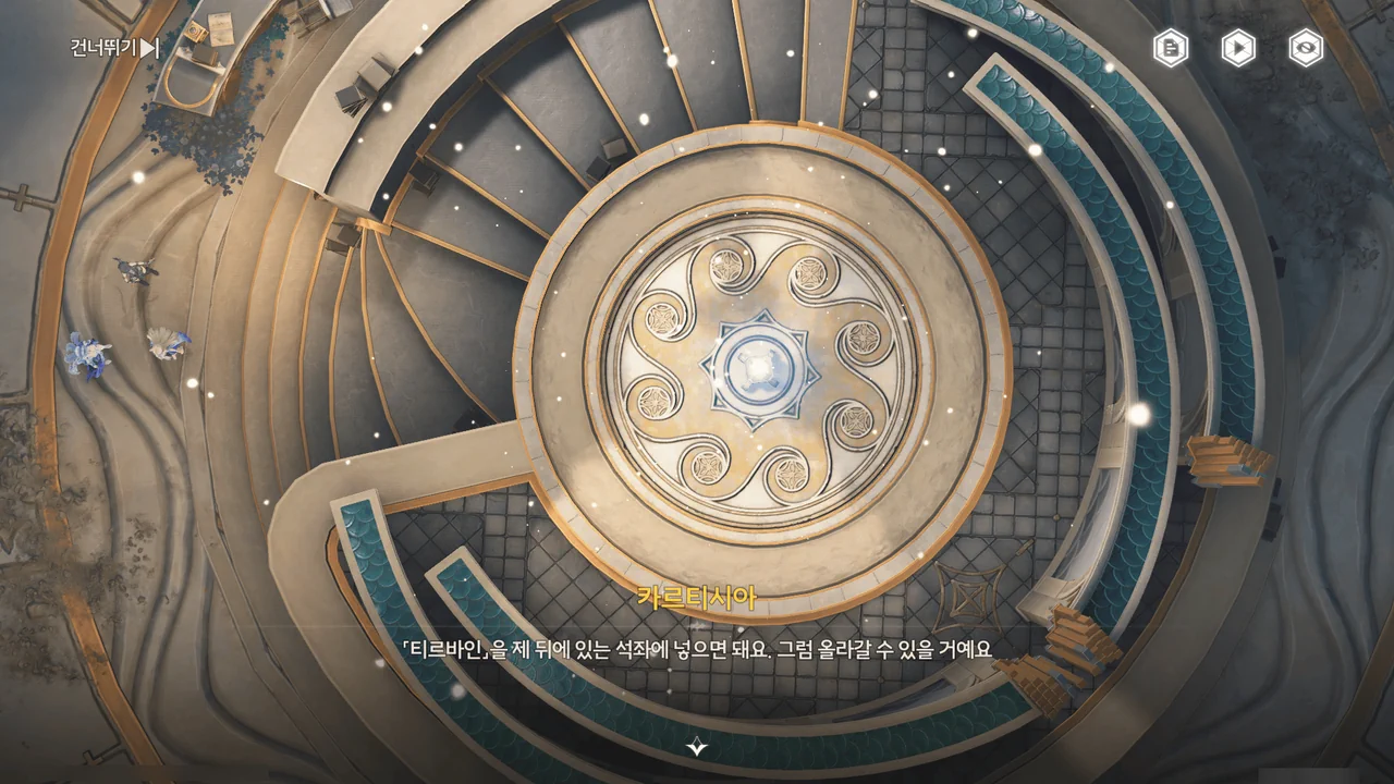 「티르바인」을 석좌에 꽂자, 방랑자 일행이 있던 탑이 마치 엘리베이터처럼 공중으로 치솟는다.