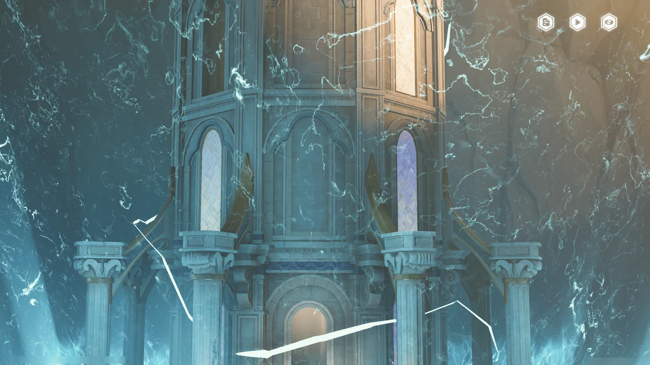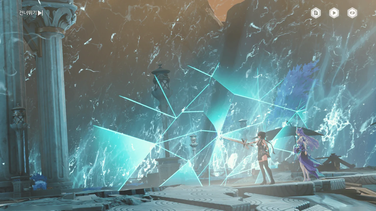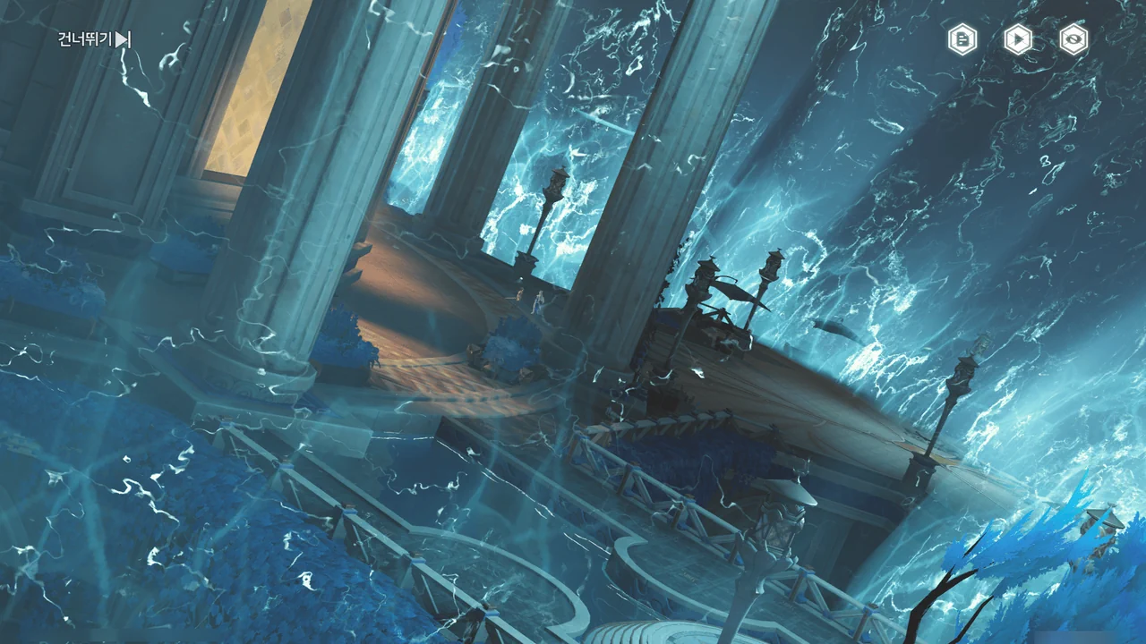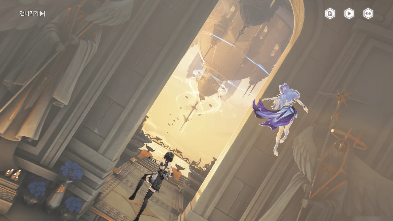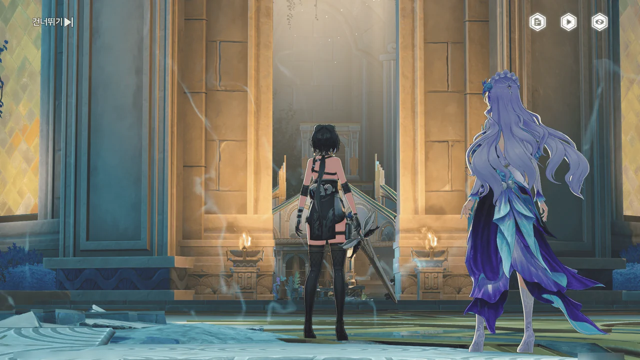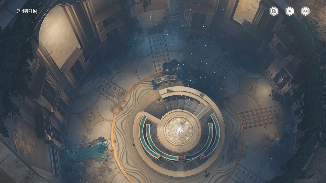 「티르바인」을 석좌에 꽂자, 방랑자 일행이 있던 탑이 마치 엘리베이터처럼 공중으로 치솟는다.
