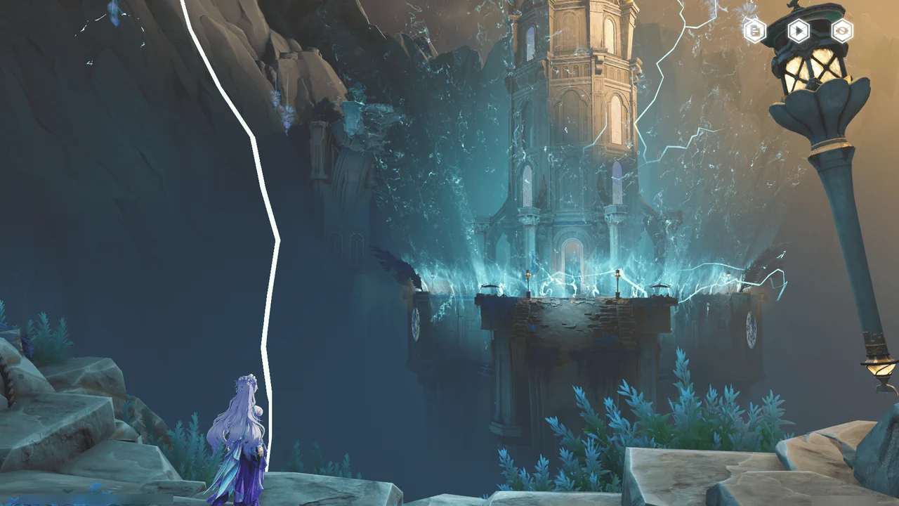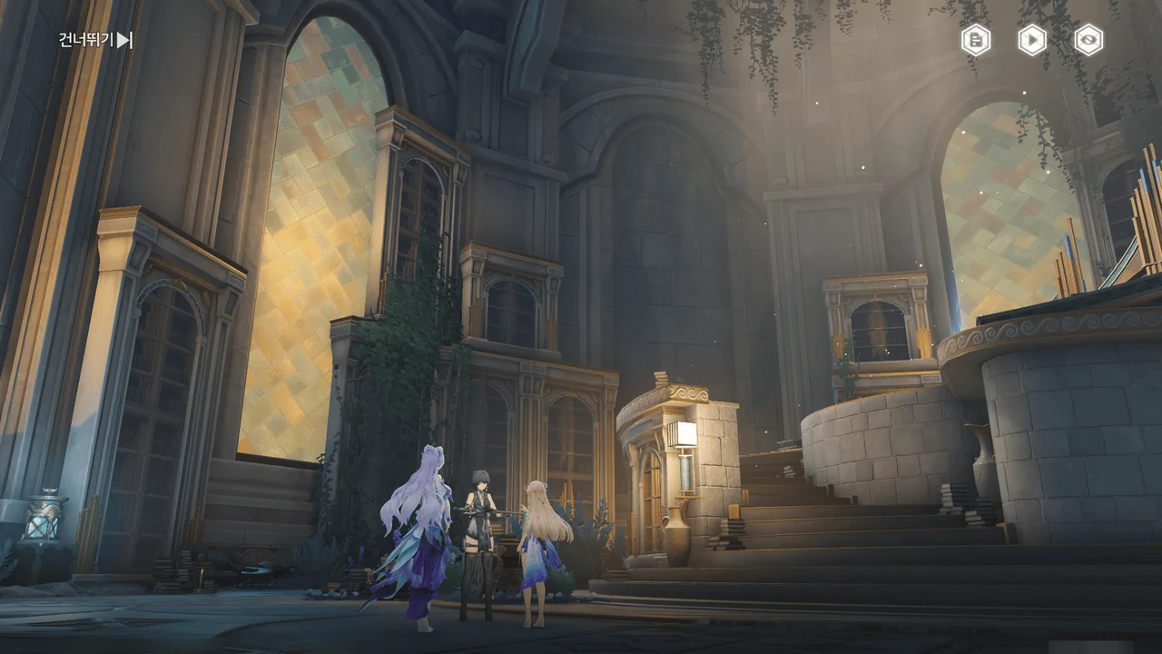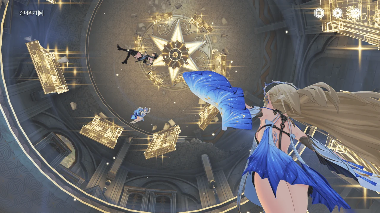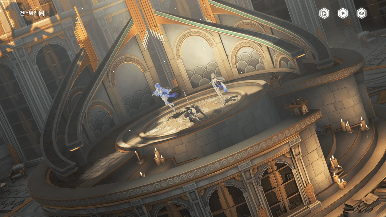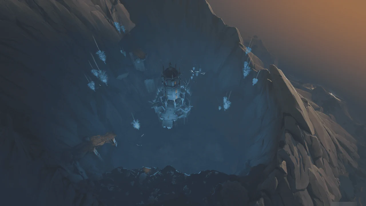 「티르바인」을 석좌에 꽂자, 방랑자 일행이 있던 탑이 마치 엘리베이터처럼 공중으로 치솟는다.