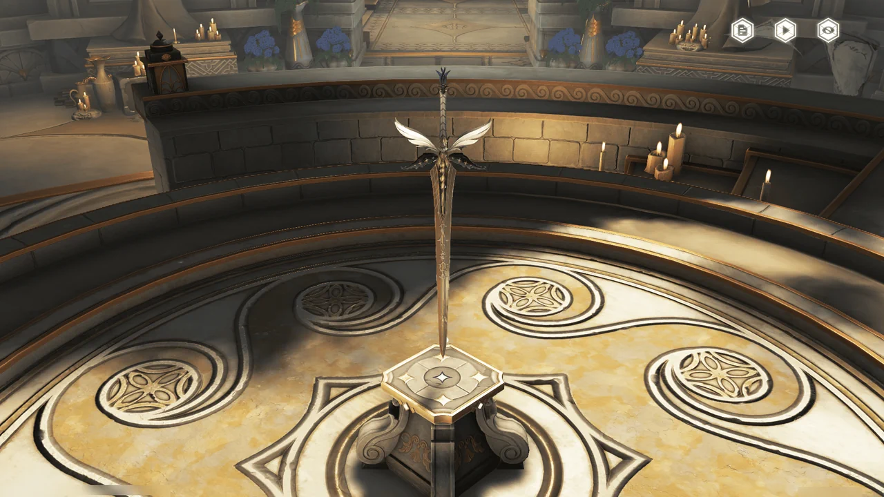 세 개의 검을 해당하는 석좌에 넣으면 중앙 탑에 있는 봉인을 열 수 있을 거라고 한다.