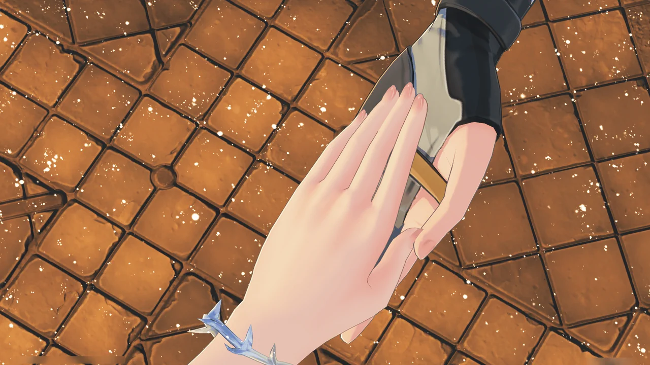 방랑자가 「티르바인」을 소노라를 감싼 결계에 꽂자, 서로 모습이 다른 세 검의 환상이 방랑자의 머릿속을 스친다.