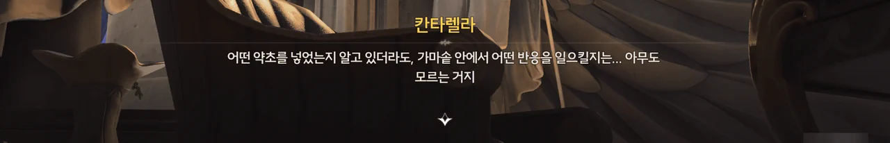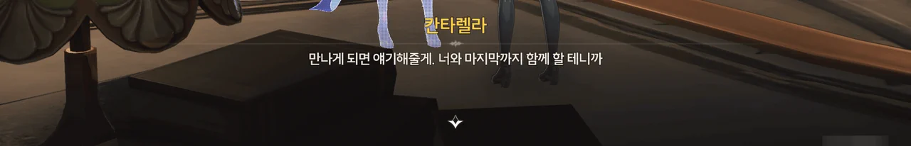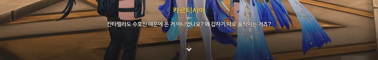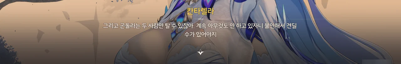 이제 카르티시아를 믿을 수 있는 거냐는 방랑자의 말에 칸타렐라는 "항상 긴장을 늦춰서는 안 돼"라며 아직 완전히 확신할 수 없다고 답한다.