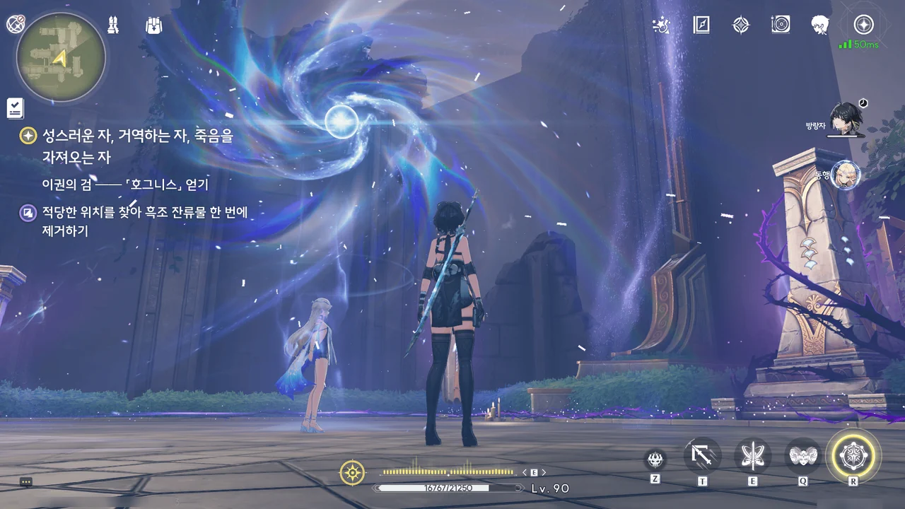 중력 전환기를 통해 「호그니스」에 도착하긴 했는데, 아직 모든 지형이 연결되지 않은 탓인지, 칼을 뽑을 수가 없다.