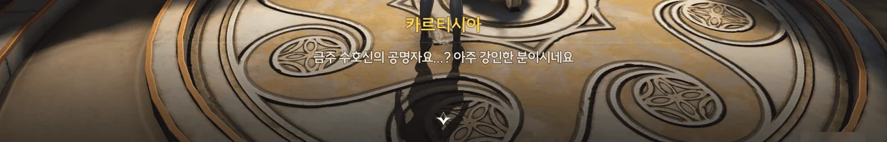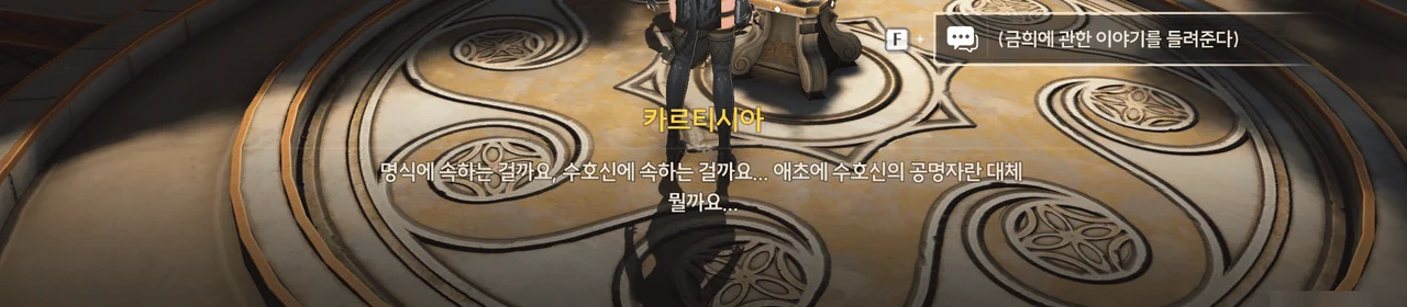 수호신의 모습을 일부 취하고 있지만 수호신의 말이 아닌 명식의 말을 하고 있는 저것은 그저 괴물일 뿐이고, 자신이 한 맹세를 지키기 위해 신으로 모시던 것에 칼을 겨눈 소녀가 바로 카르티시아이니까.