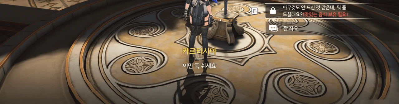 여기서 카르티시아에게 맛있는 음식을 주었으면 어떤 대화를 들을 수 있었을까?
