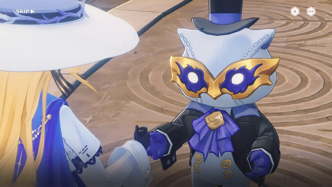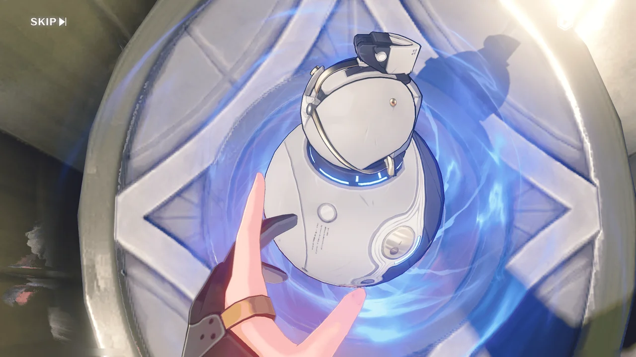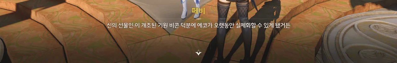 가면 쓴 에코가 다가와 방랑자에게 무언가를 건넨다. 오르골처럼 생긴 거 같은데, 이거.