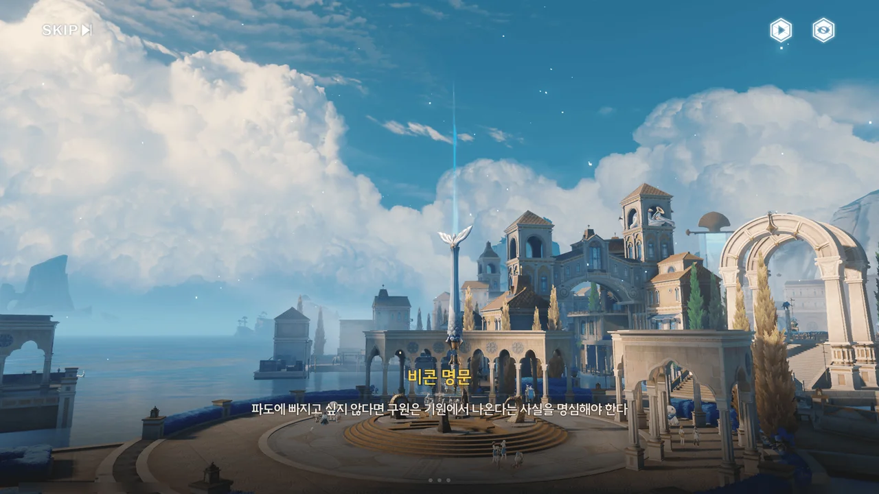그 목소리에 이끌려 사람들이 서로를 도와 항해한 끝에 도착한 곳이 바로 여기 '기원 비콘'이 위치한 섬이다.