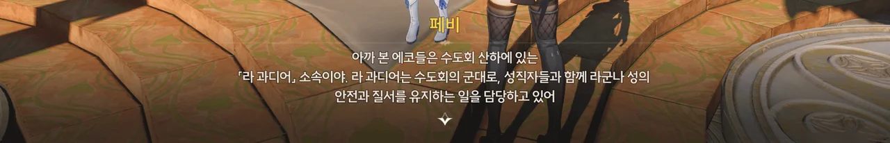 다만 「라 과디어」 같은 특수 목적의 에코는 정해진 사람에게만 반응하며, 수도회 사람에게만 반응하는 에코는 보통 머리 위에 아우라가 있으니 그걸 보면 된다고 한다.